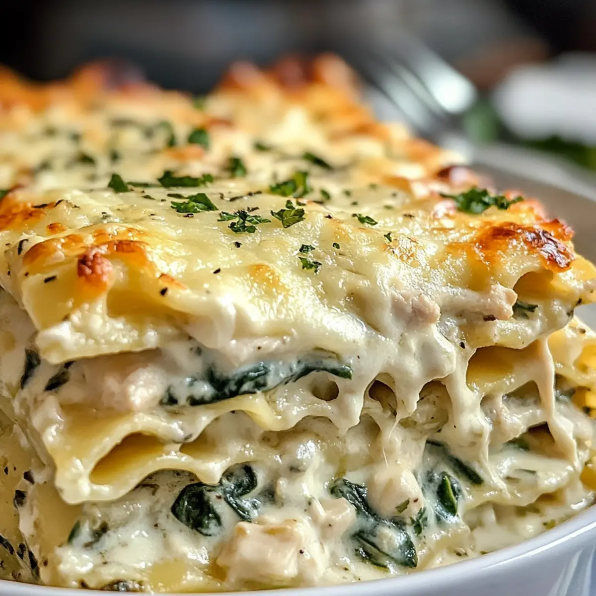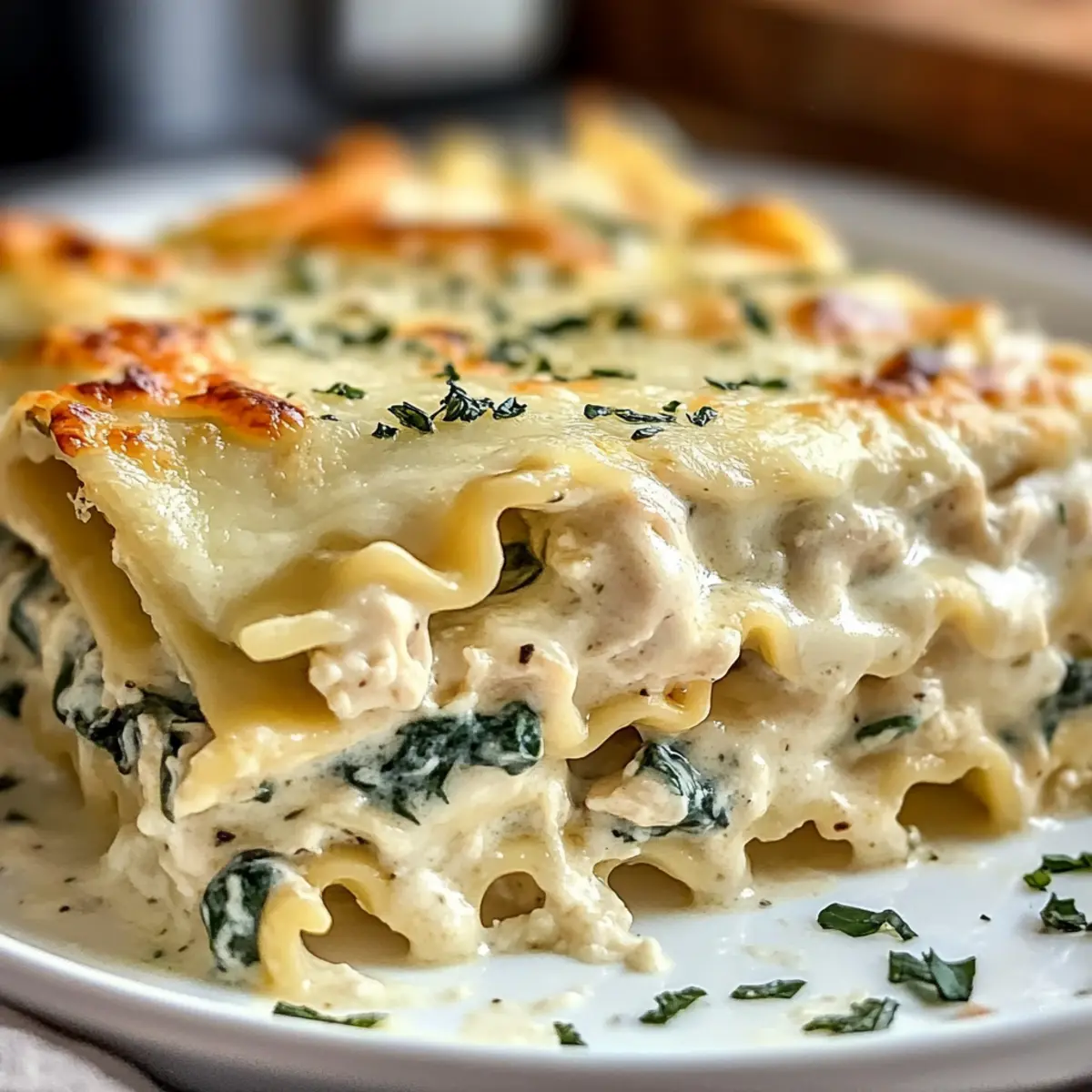 Ein häufiges Problem ist, dass die Lasagne wässrig wird. Um das zu vermeiden, lasse die Alfredo-Sauce leicht eindicken, bevor du mit dem Schichten beginnst. Wenn du frischen Spinat verwendest, achte darauf, dass er gut entwässert ist, damit er keine Flüssigkeit abgibt, während die Lasagne backt.