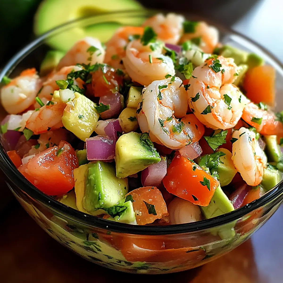 Personalisierung: Experimentiere mit Gewürzen und Zutaten, um dein eigenes Avocado Garnelen Ceviche zu kreieren; füge z.B. frischen Ingwer oder würzige Paprika für einen zusätzlichen Kick hinzu.