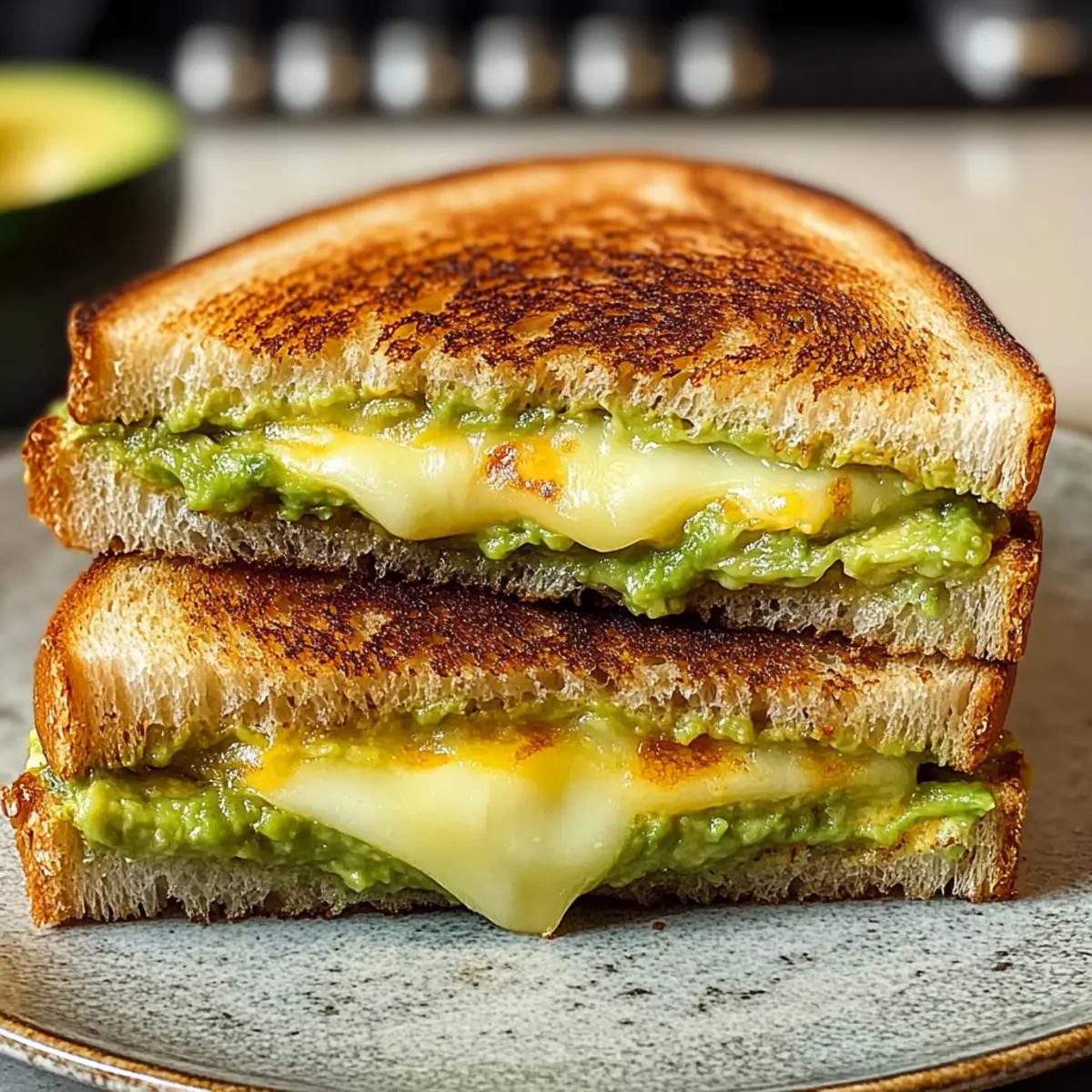 Cremige Textur: Die Kombination aus geschmolzenem Käse und zarter Avocado sorgt für ein hervorragendes Geschmackserlebnis.