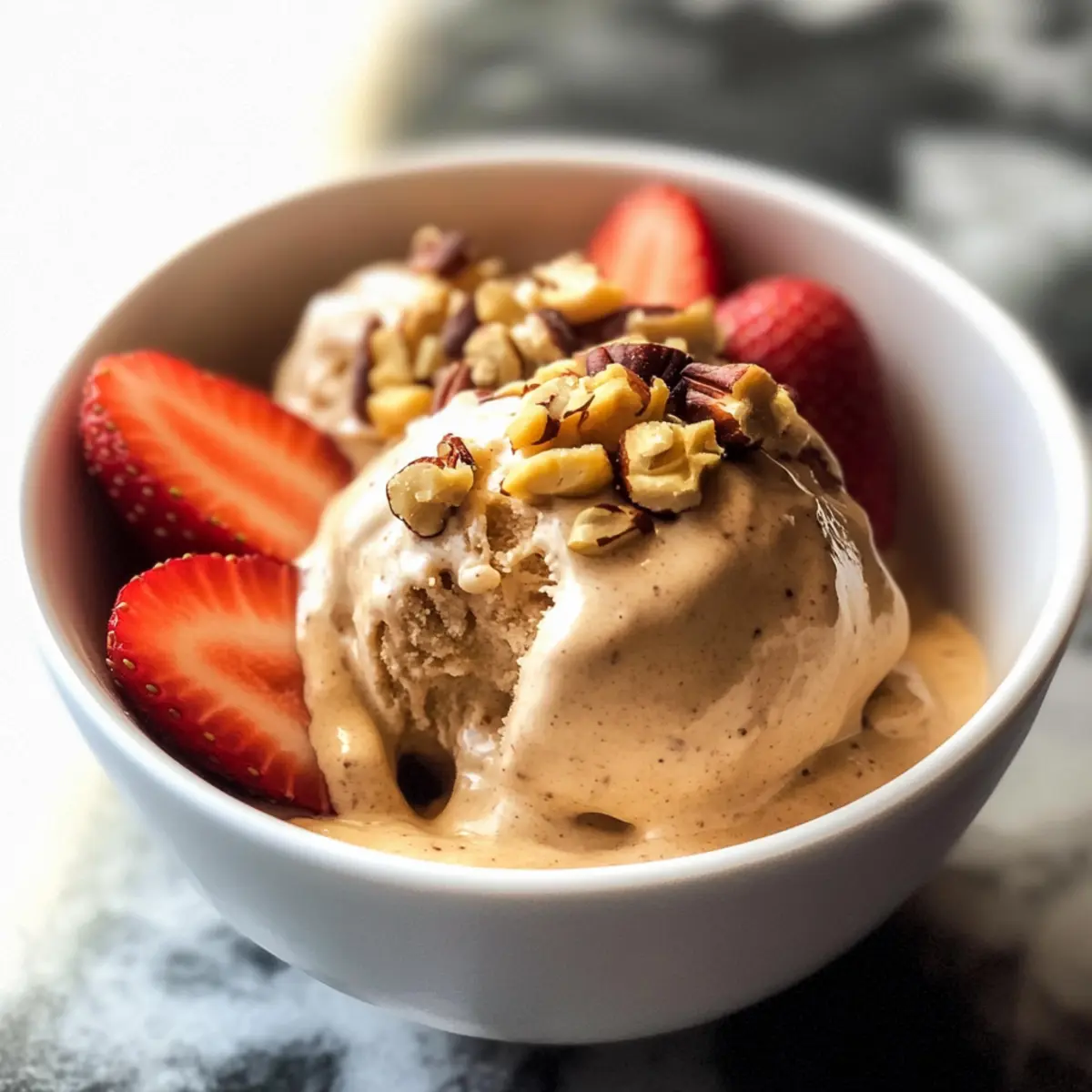 Cremige Erdnussbutter: Ein Klecks Erdnussbutter obendrauf sorgt für einen nussigen, reichhaltigen Geschmack, der das Bananeneis wunderbar ergänzt.