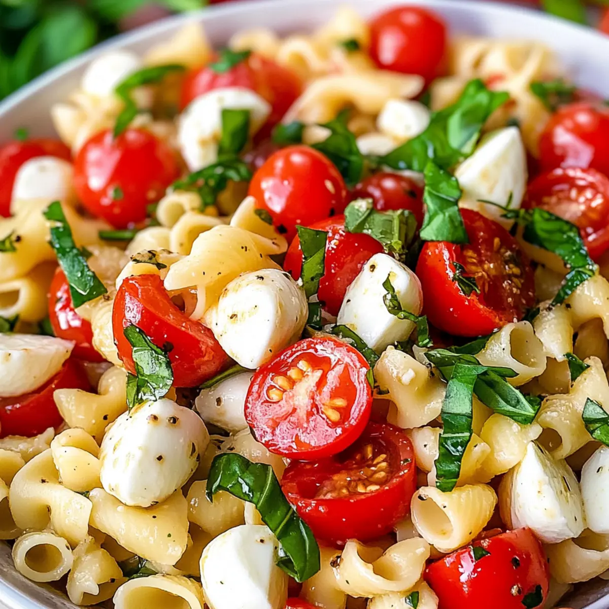 Mit diesen hochwertigen Zutaten zaubern Sie einen köstlichen Caprese-Pasta-Salat, der nicht nur Ihre Geschmacksknospen verwöhnt, sondern auch perfekt zu jeder Gelegenheit passt!