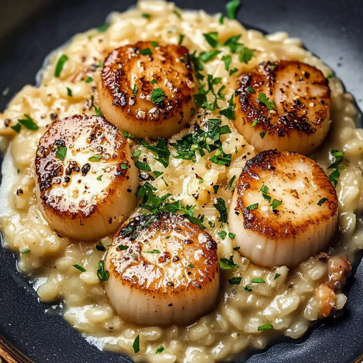 Zitronenbutter-Scampis auf cremigem Risotto