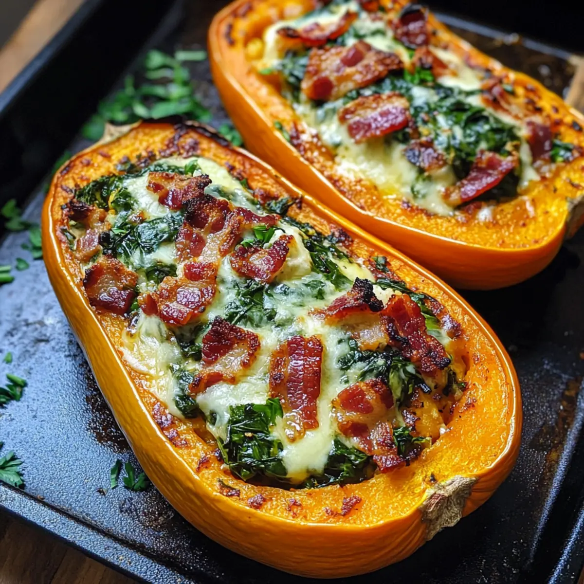 Gefüllte Eichel mit cremigem Spinat und Käse