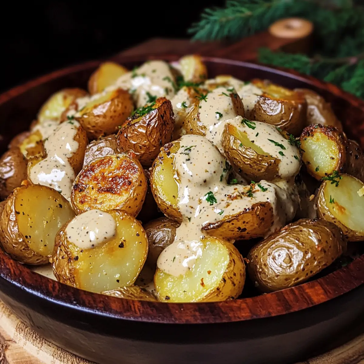 Röstkartoffeln mit cremiger Senfsauce gaumenfreuden