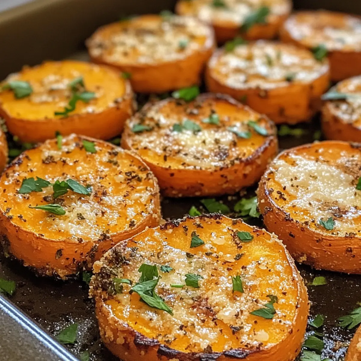 Süßkartoffelmedaillons mit Parmesan und Kräutern