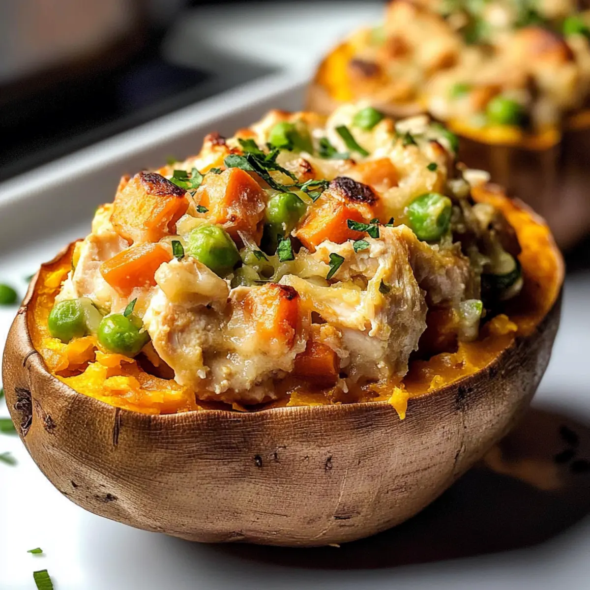 Hühnertopf-Pastete in Süßkartoffeln gefüllt