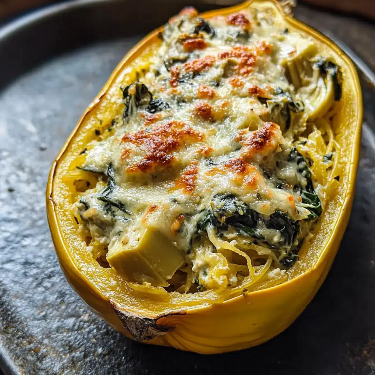 Spinat und Artischocke gefüllter Spaghetti-Kürbis
