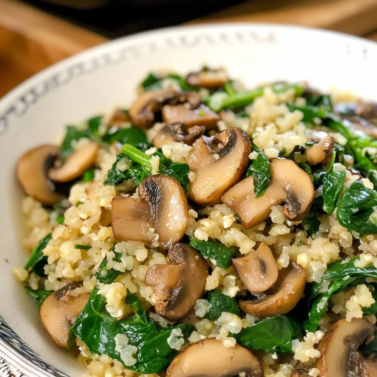 Blumenkohlreis mit Pilzen und Spinat selber machen