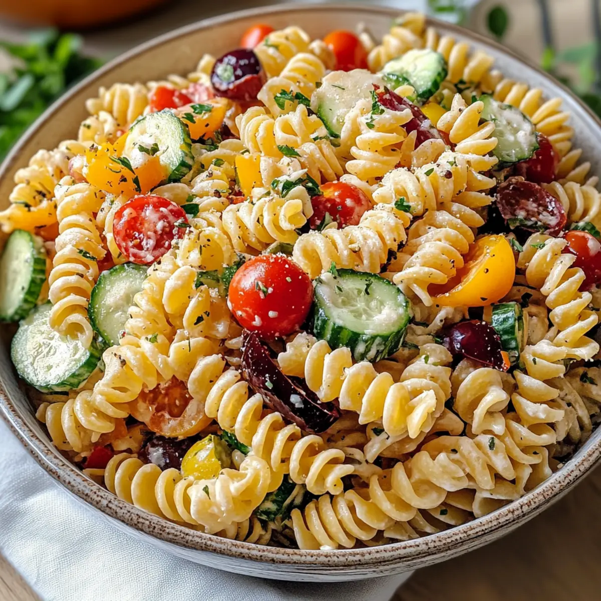 Weihnachtsnudelsalat mit buntem Gemüse genießen