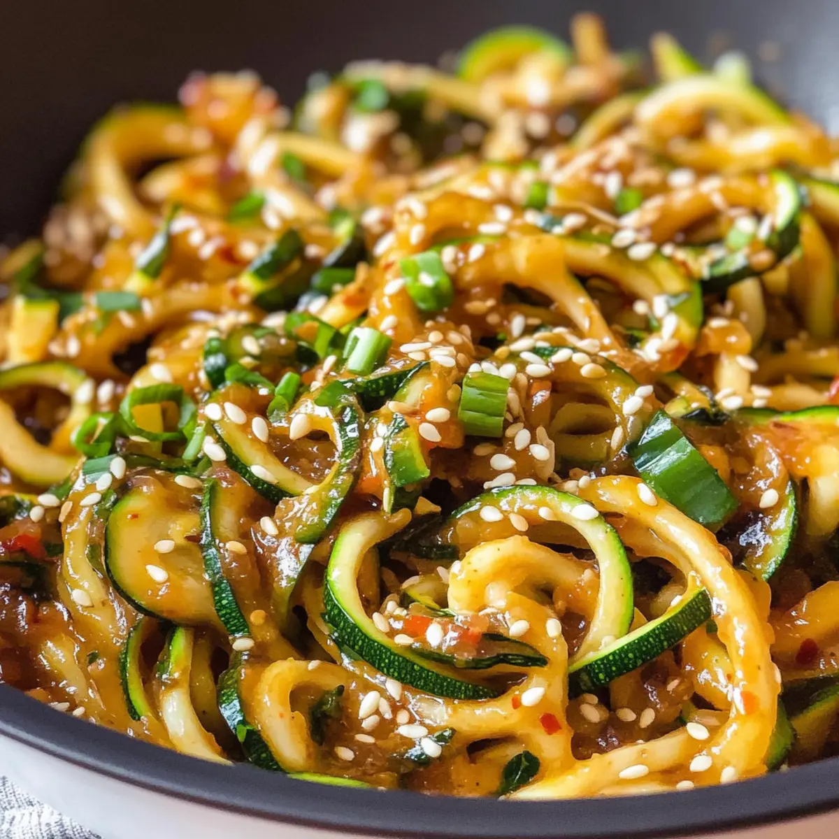 Zucchini Noodles mit scharfem Knoblauch-Dressing
