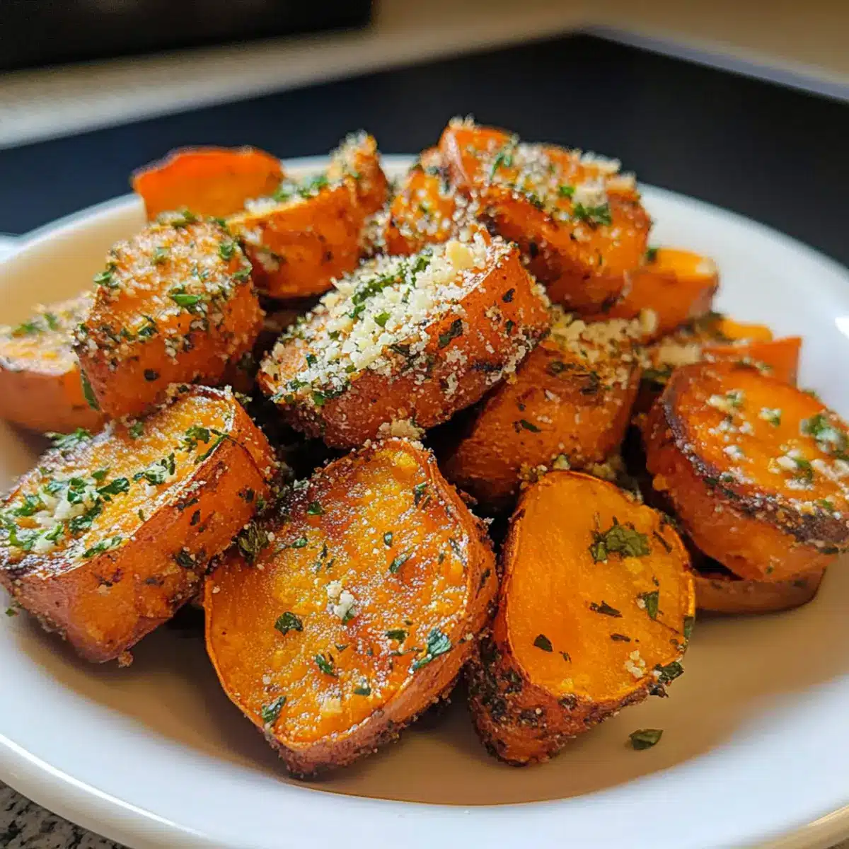 Süßkartoffel Bissen mit Parmesan und Kräutern