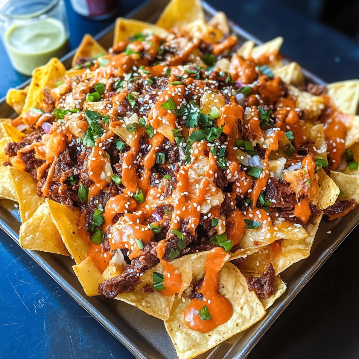Koreanisches Rindfleisch Nachos für dein Spielvergnügen