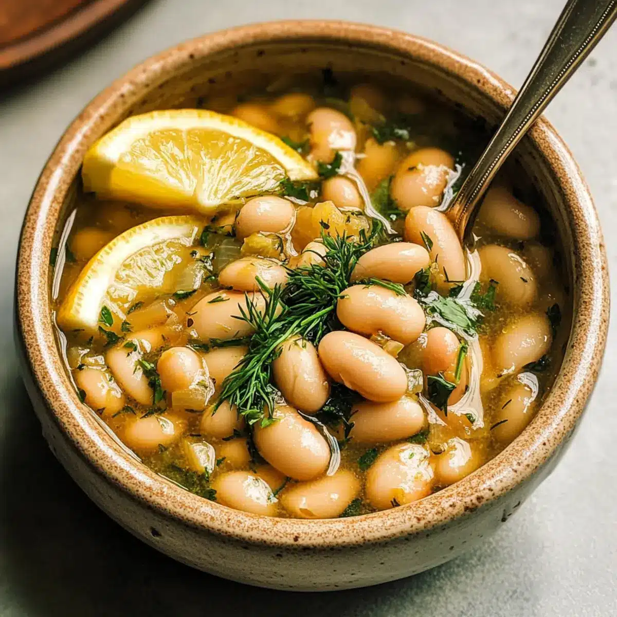Brühe Bohnen mit Kräutern und Zitrone