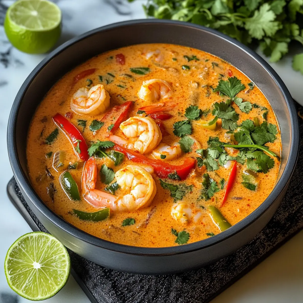 Garnelensuppe mit rotem Curry und Kokosmilch