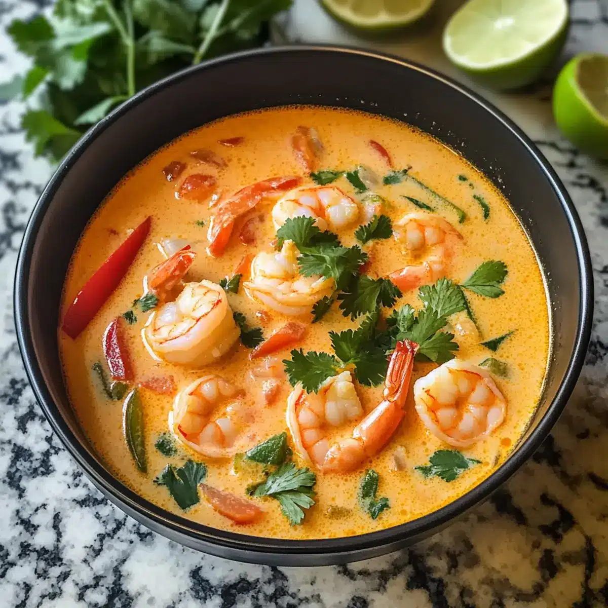 Thailändische Garnelen in köstlicher Kokosnuss-Suppe