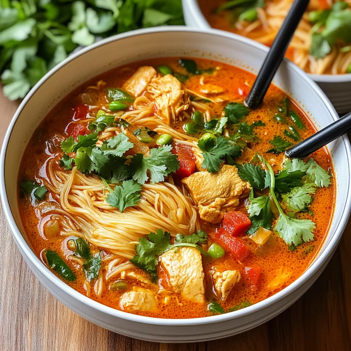 „Darf ich dir ein Geheimnis verraten? Die beste Wohltat nach einem langen Tag ist eine warme Schale Curry-Nudelsuppe.“ Diese Thai Red Curry Noodle Soup ist nicht nur eine wahre Geschmacksexplosion, sie ist auch die perfekte Lösung für alle, die eine schnelle, wohltuende und anpassbare Mahlzeit suchen. In nur einem Topf vereint diese Suppe zarte Hähnchenstücke, aromatische Reisnudeln und frische Kräuter – ein echtes Comfort Food, das viel besser ist als der übliche Lieferdienst! Ob du es vegan mit Tofu zubereitest oder mit extra Gemüse aufpeppst, die Möglichkeiten sind endlos. Bist du bereit, deine Freunde mit einem Geschmackserlebnis zu überraschen, das sie nicht vergessen werden? Lass uns direkt loslegen!