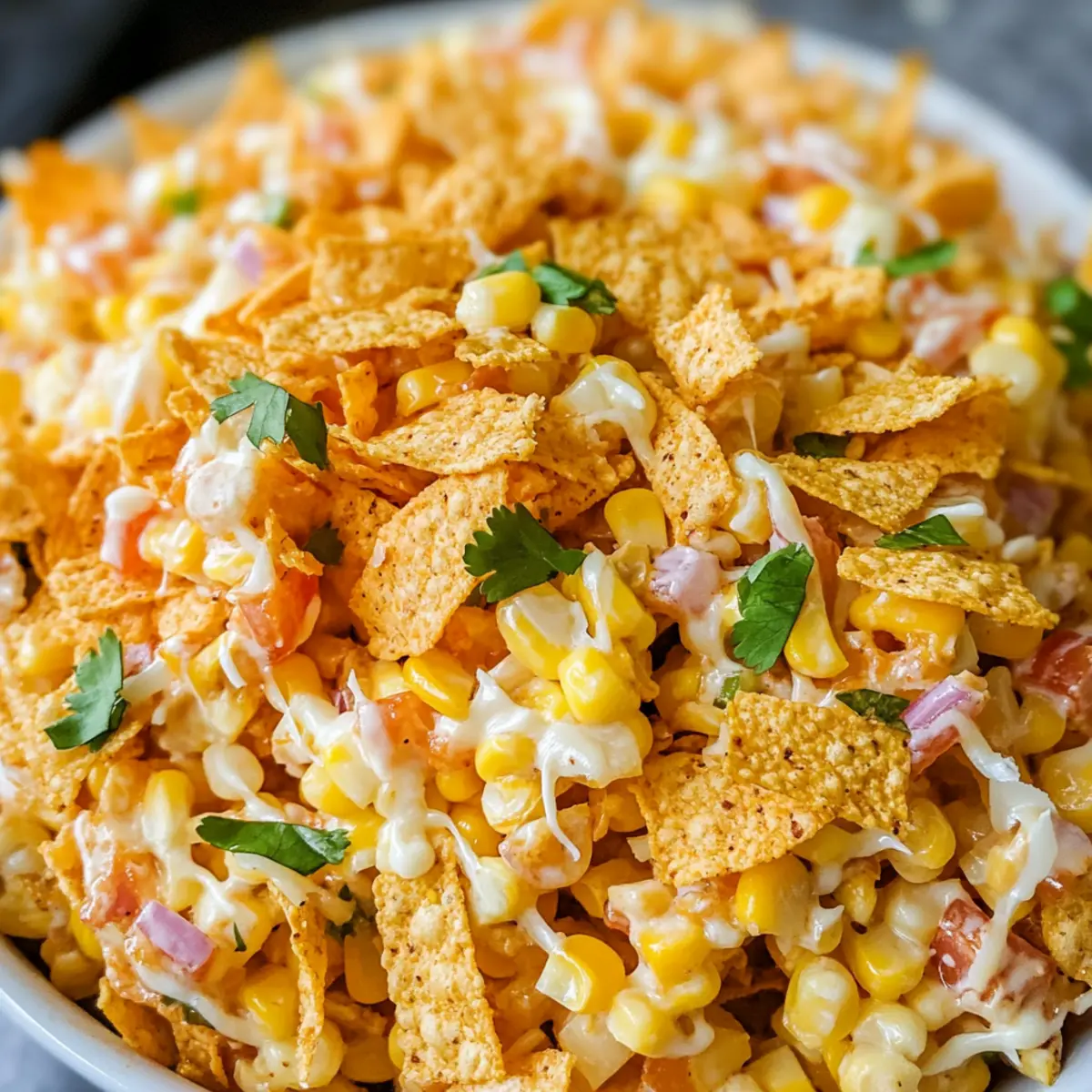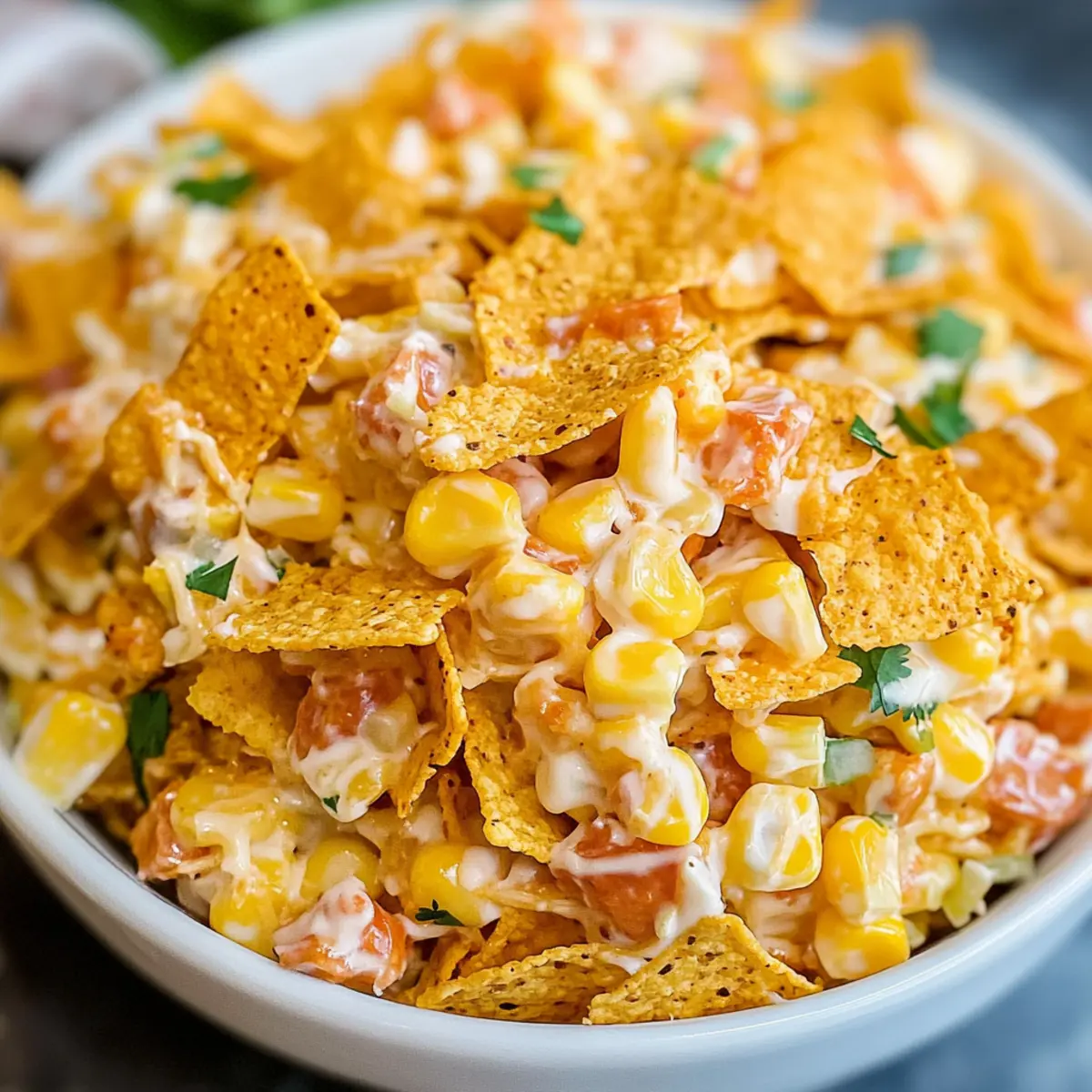 Perfekte Textur: Der knusprige Genuss der Fritos ergänzt die Cremigkeit des Salats und sorgt für ein einzigartiges Esserlebnis.