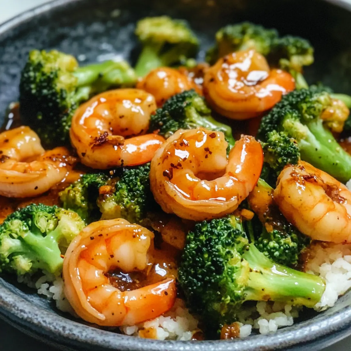 Gieße die vorbereitete Sauce in die Pfanne zu den Garnelen und füge den gedämpften Brokkoli hinzu. Koche alles zusammen, bis die Sauce eindickt und die Garnelen sowie der Brokkoli gut bedeckt sind. Dies dauert etwa 2-3 Minuten. Rühre gelegentlich um, um sicherzustellen, dass nichts ansetzt und die Aromen sich bestens entfalten. Serviere das Gericht heiß, wahlweise über Reis oder einfach so.