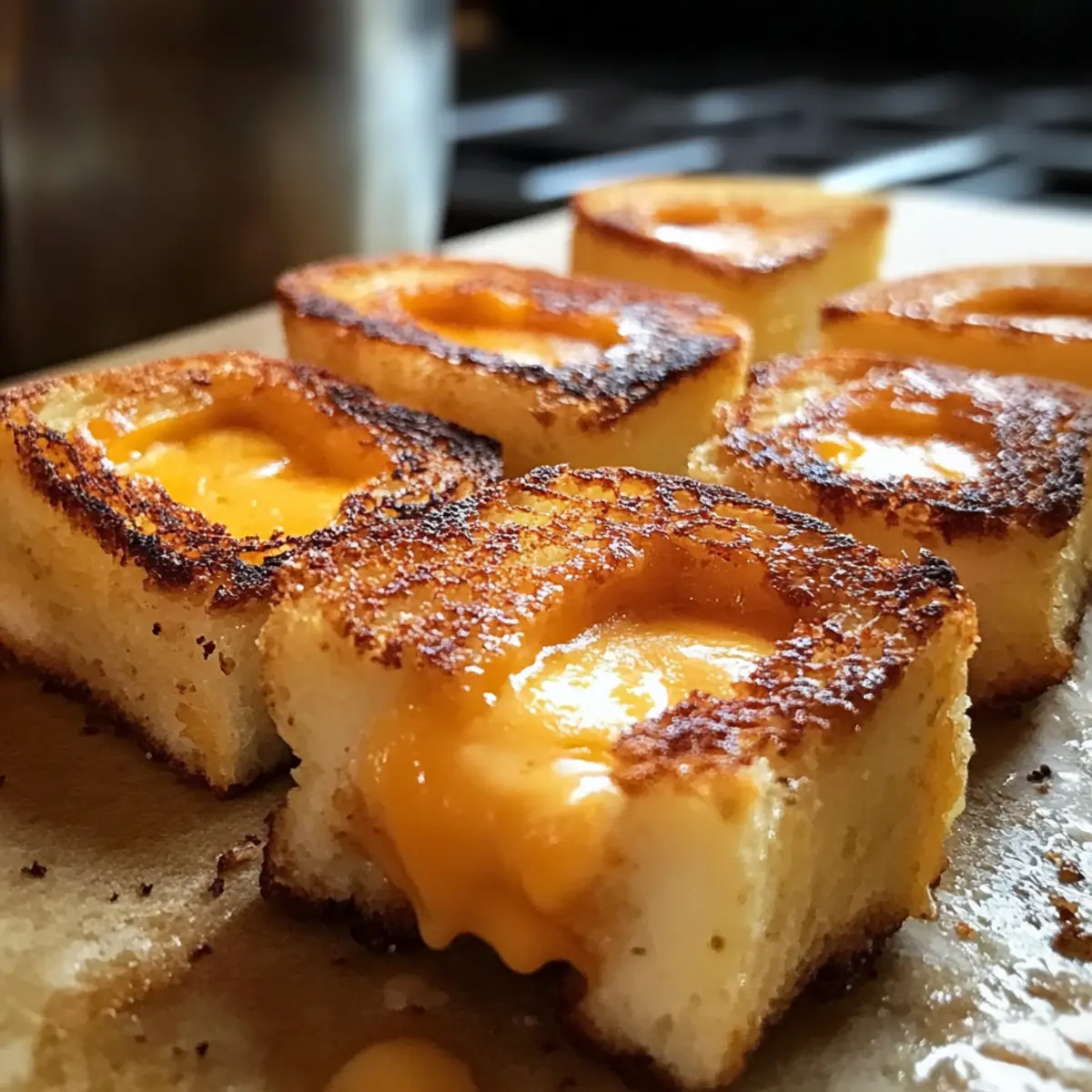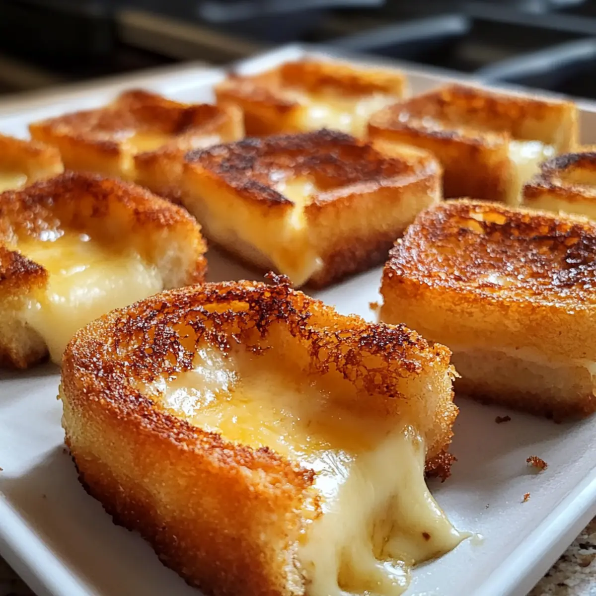 Nach weiteren 2-4 Minuten, wenn die andere Seite ebenfalls schön goldbraun ist, entferne die Sandwiches vorsichtig aus der Pfanne. Überprüfe, ob die Käse-Dipper eine gleichmäßige Kruste haben und der Käse gut geschmolzen ist.