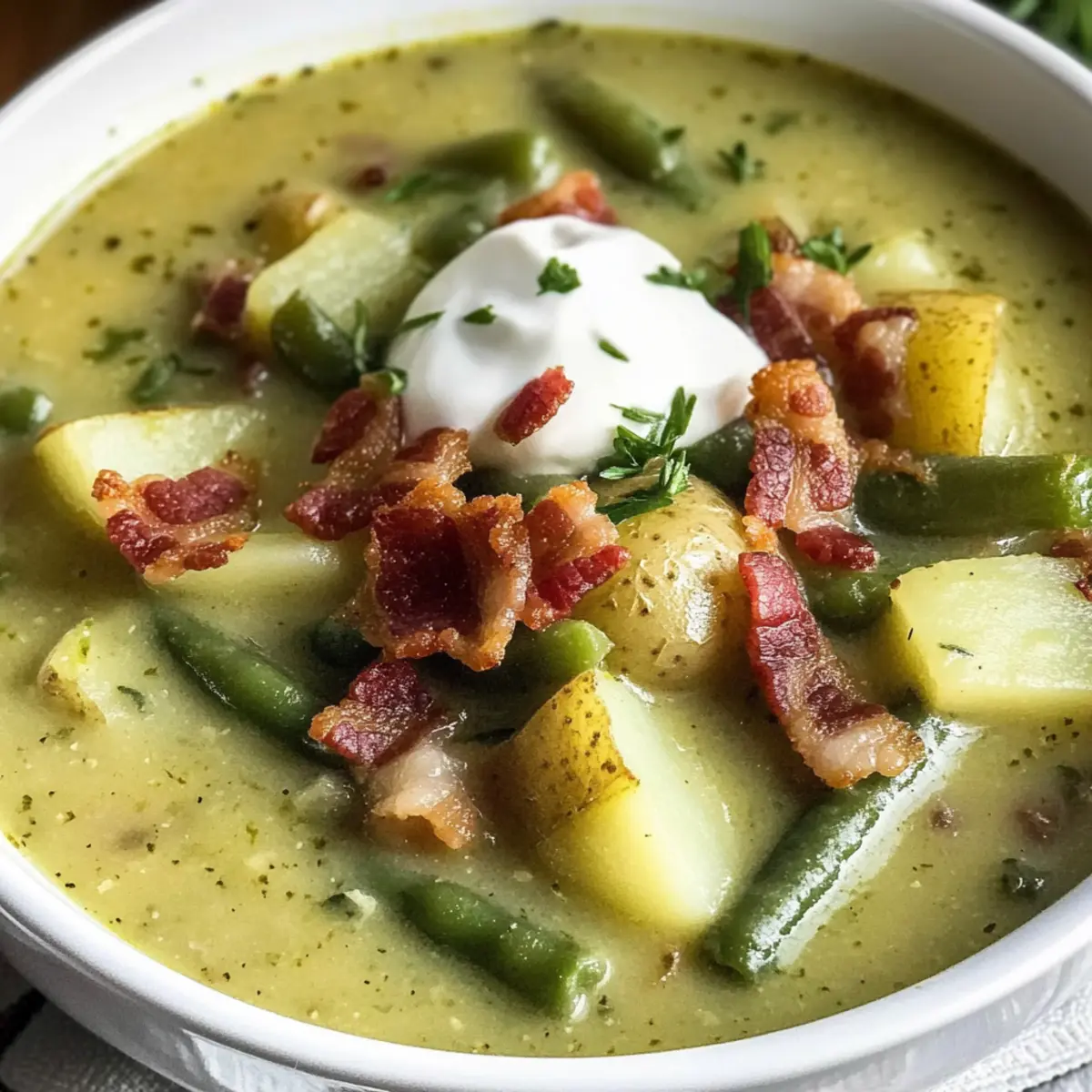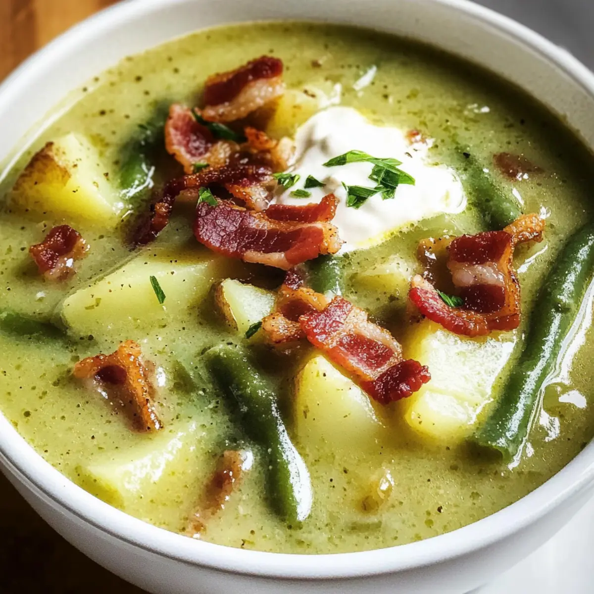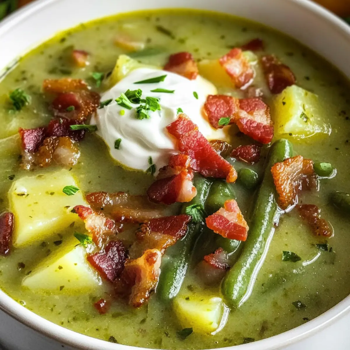 Beim Einkaufen auf dem Markt fiel mir neulich der frische Duft von knackigen grünen Bohnen auf, der Erinnerungen an meine Kindheit weckte. Damals bereitete meine Großmutter regelmäßig ihre berühmte Grüne Bohnensuppe zu, die ganze Familienschar versammelte sich um den Tisch. Diese köstliche, deutsche Suppe vereint zarte grüne Bohnen mit cremigen Kartoffeln und dem rauchigen Aroma von Bacon. Die Grüne Bohnensuppe ist nicht nur ein absoluter Genuss, sondern auch eine schnelle und sättigende Option für gemütliche Abende oder leichte Mittagessen. Für diejenigen, die sich nach einer vegetarischen Variante sehnen, gibt’s einfache Alternativen. Lass uns gemeinsam in die Welt dieser wohltuenden Suppe eintauchen – bist du bereit für den perfekten Tröster an kalten Tagen?