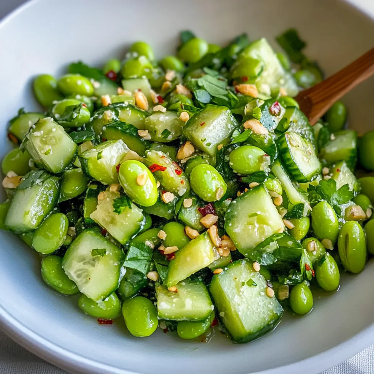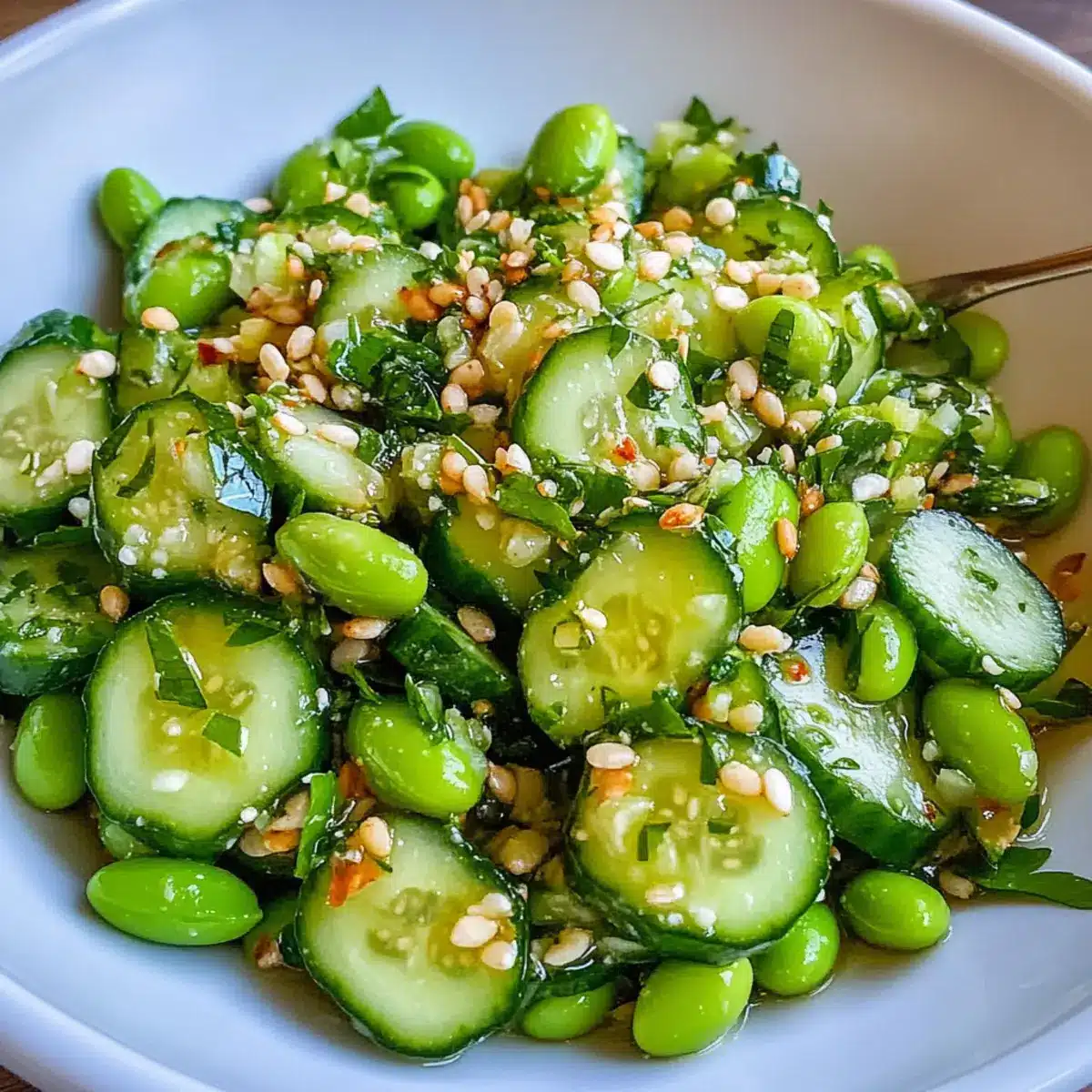 Gurken Edamame Salat mit asiatischem Dressing