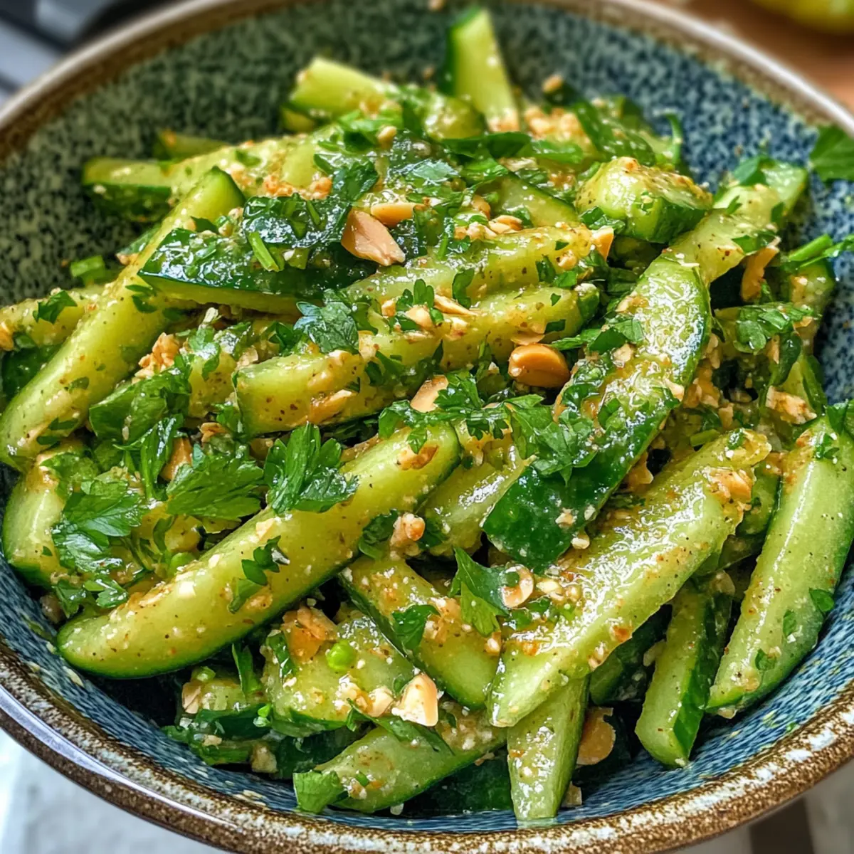 Eines warmen Sommerabends, als die allgegenwärtige Hitze das Verlangen nach einer erfrischenden Speise weckt, kam mir die Idee für diesen magischen Gurken-Erdnussbutter-Salat. Diese glutenfreie und vegane Köstlichkeit kombiniert knackige Gurkenstreifen mit frischem Koriander, scharfen Chilis und gerösteten Sesamkörnern, und wird von einem cremigen, aromatischen Dressing aus Erdnussbutter gekrönt. Schnell zubereitet in nur 15 Minuten, ist dieser Salat nicht nur eine perfekte leichte Mahlzeit, sondern auch eine gesunde Beilage für deine nächsten Grillabende. Meiner Meinung nach ist der perfekte Genuss immer mit einer Prise Experimentierfreude verbunden – was könnte man wohl noch alles hinzufügen? Bist du bereit, diese erfrischende Geschmacksexplosion auszuprobieren?