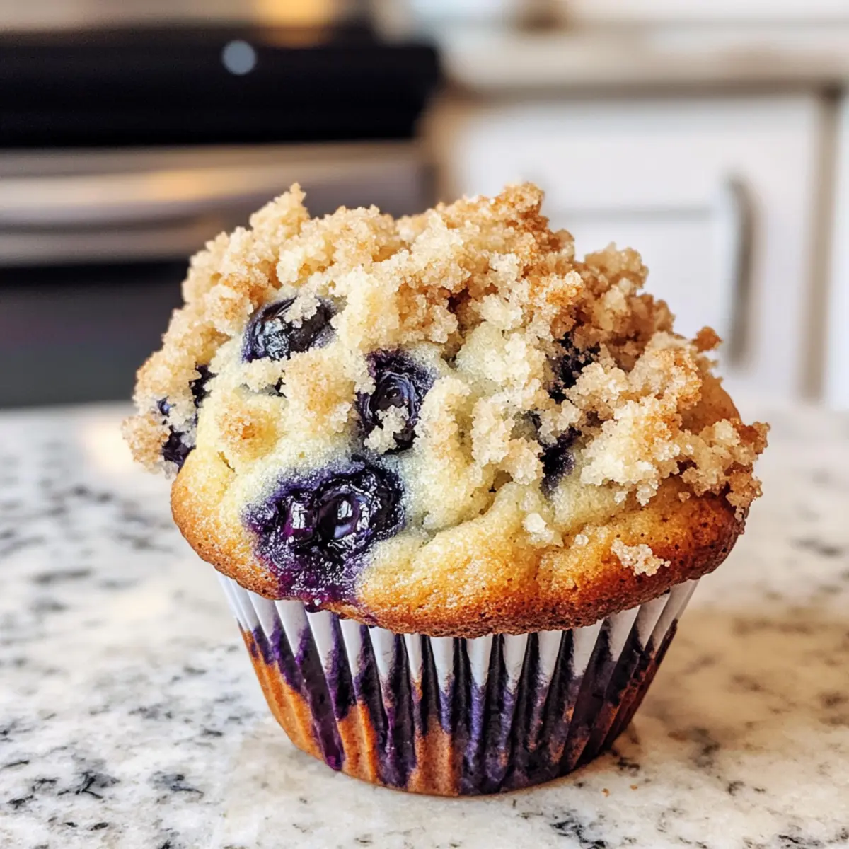 Füllen Sie die Muffinförmchen bis zum Rand mit dem Heidelbeerteig und streuen Sie eine großzügige Menge Streusel darüber. Stellen Sie sicher, dass die Förmchen gut gefüllt sind, um die charakteristische Jumbo-Größe zu erreichen, die jeder liebt.