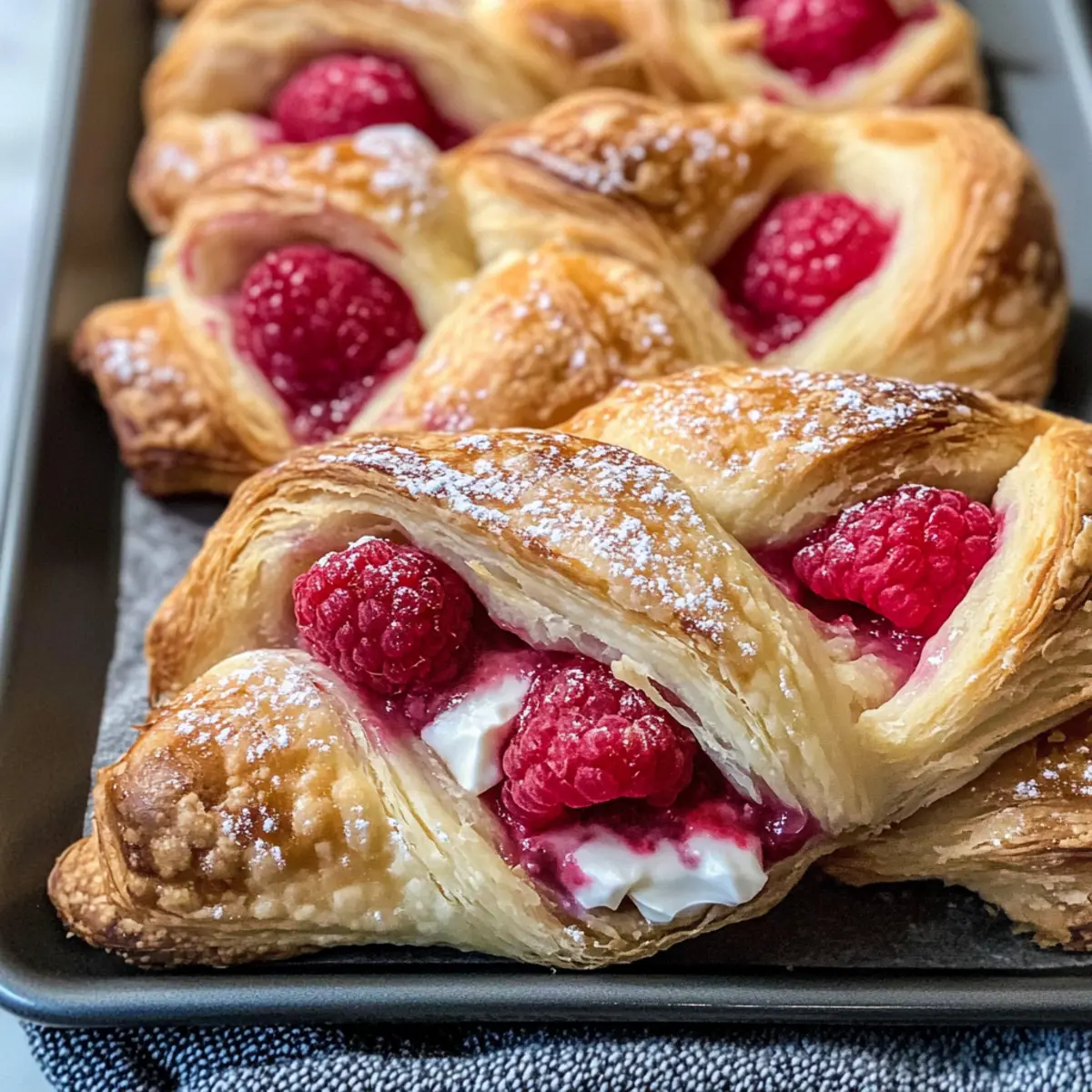 Wenn ich den vertrauten Duft frisch gebackener Himbeer-Dänisch wahrnehme, fühle ich mich sofort in meine Kindheit zurückversetzt – mit warmen Sonnenstrahlen, die durch die Küche scheinen, während meine Mutter mit geschickten Händen leckeres Gebäck zaubert. In diesem Rezept für “Easy Raspberry Danish with Cream Cheese Filling” kombiniert sich zartes, blättriges Blätterteiggebäck mit einer himmlisch cremigen Füllung aus Frischkäse und frischen Himbeeren. Dieses Himbeer-Dänisch ist nicht nur überaus einfach und schnell zubereitet, sondern auch eine wunderbare Option für Busys am Morgen oder ein süßes Dessert, das jeder lieben wird. Egal, ob Sie es für ein gemütliches Frühstück oder als genussvollen Nachmittagssnack servieren – Sie werden von dieser perfekten Balance aus knusprigem Teig und fruchtiger Füllung begeistert sein. Ready to dive into this sweet culinary adventure?