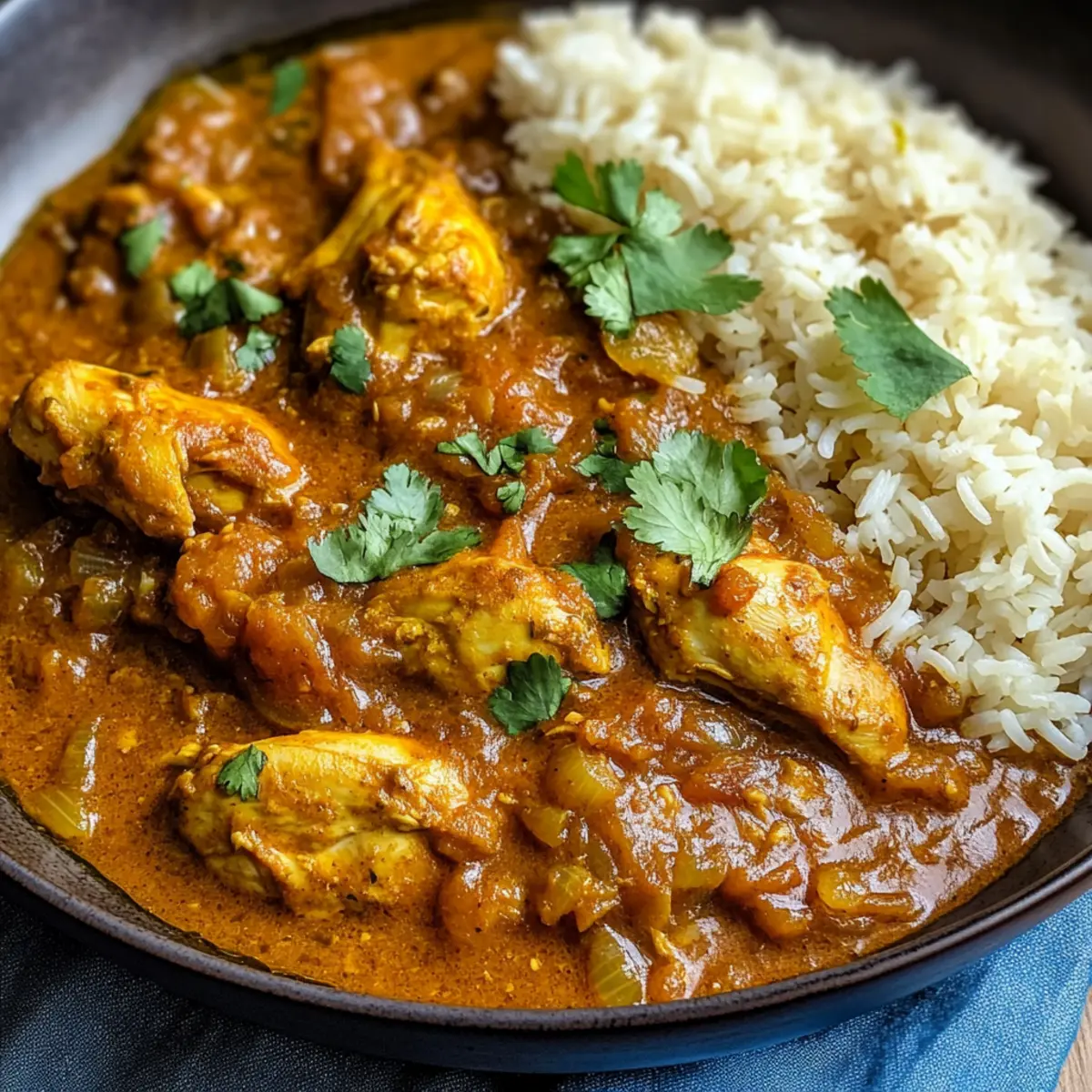 Hühnchen Dupiaza mit fluffigem Pilau-Reis