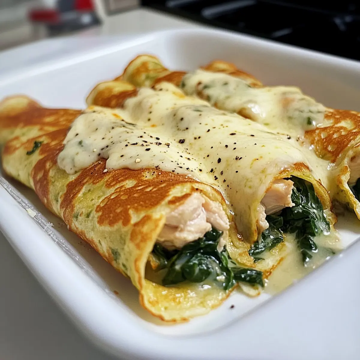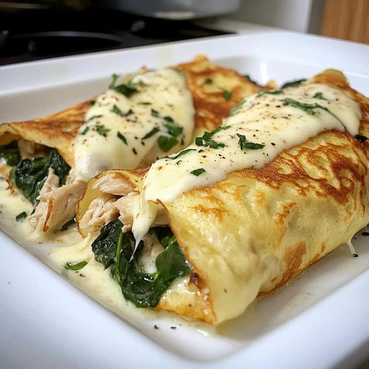 Gesunde Wahl: Diese Hühnchen Florentiner Crepes sind nicht nur low-carb, sondern auch glutenfrei und perfekt für verschiedene diätetische Bedürfnisse.