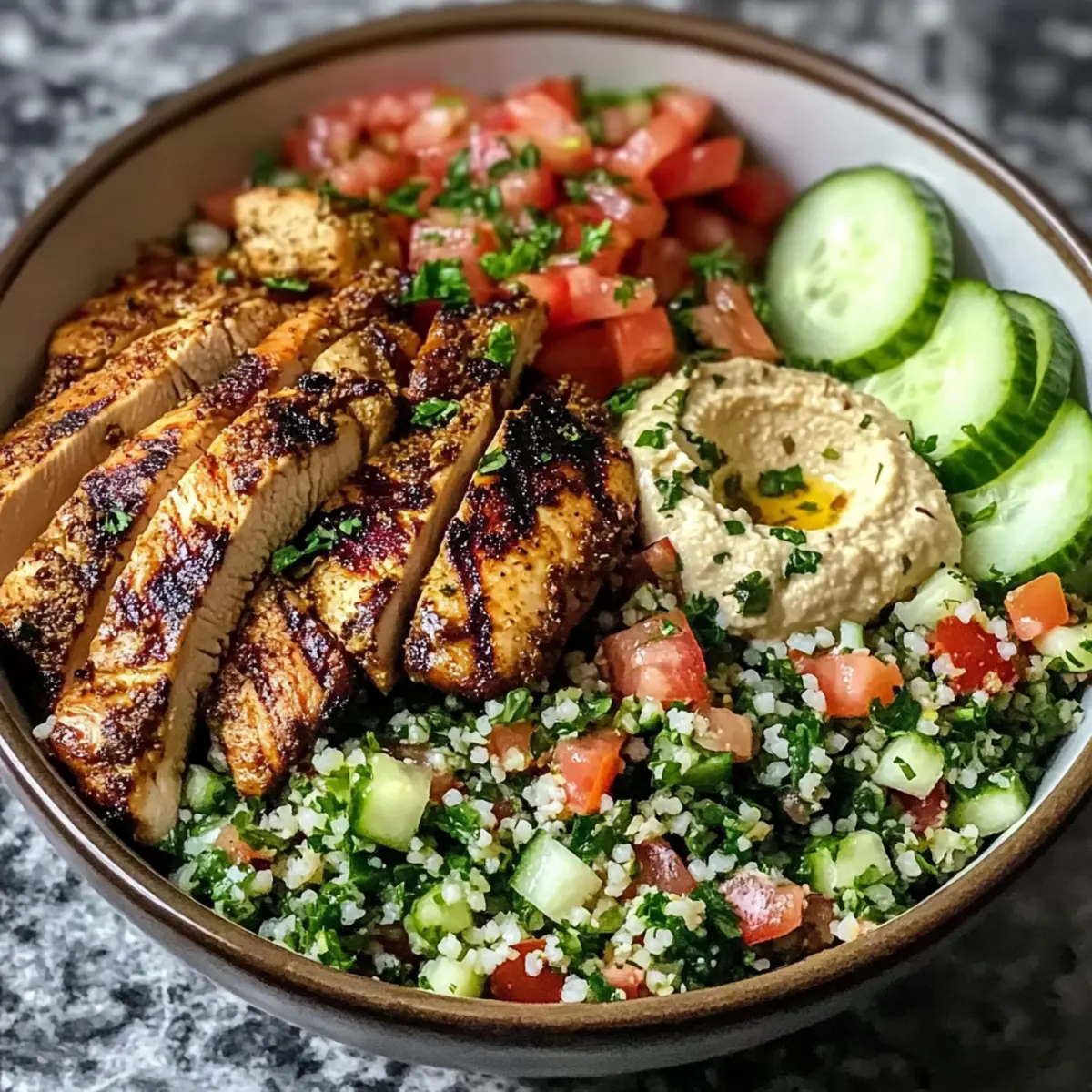 Eines der schönsten Dinge am Kochen ist die Möglichkeit, die Aromen ferner Länder in unsere eigenen Küchen zu bringen. Bei jedem Bissen dieser Hühnchen Shawarma Schüssel mit Tabbouleh fühle ich mich wie auf einer kulinarischen Reise durch den Nahen Osten, wo die Gewürze harmonisch miteinander tanzen. Dieses Gericht vereint saftiges, mariniertes Hühnchen mit einem erfrischenden, kräuterreichen Tabbouleh, und ist die perfekte Wahl für ein schnelles, aber dennoch nahrhaftes Essen, das sich leicht anpassen lässt. Ob du nun mit verschiedenen Proteinvarianten experimentieren oder extra Gemüse hinzufügen möchtest, diese Schüssel ist nicht nur ein Genuss, sondern auch ein echter Hingucker auf jedem Tisch. Bist du bereit, mit mir in diese köstliche Welt einzutauchen?