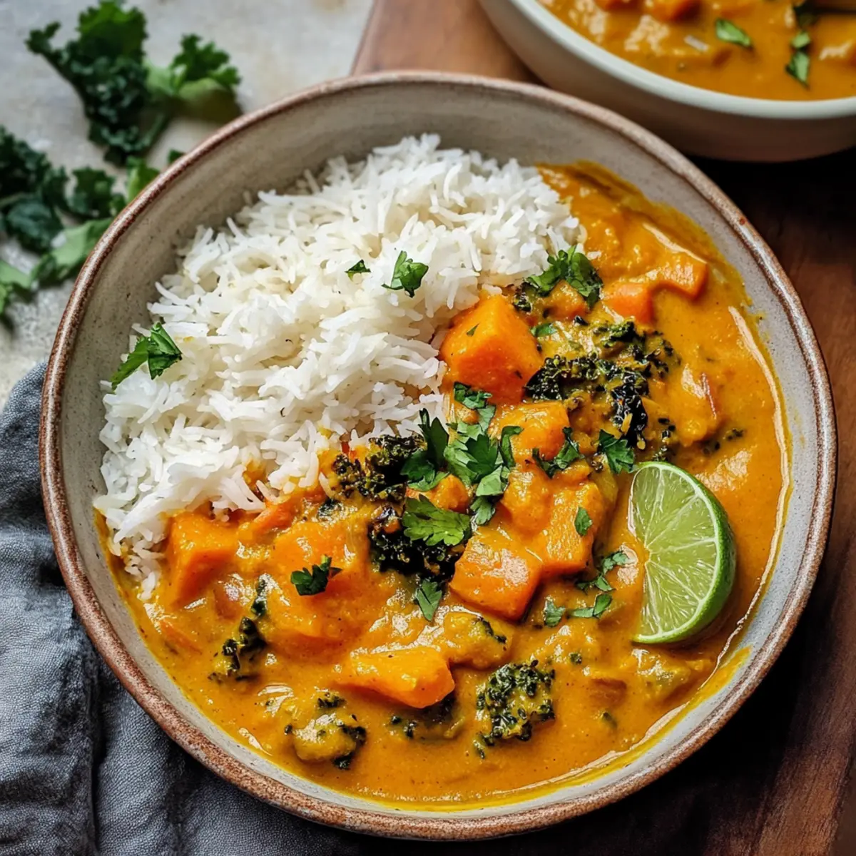 Wenn das Curry zu dünn ist, reduzieren Sie die Menge der Gemüsebrühe oder lassen Sie es einfach länger köcheln, bis sich die Flüssigkeit reduziert. Für eine noch cremigere Konsistenz können Sie etwas mehr Kürbispüree oder Kokosmilch hinzufügen, um die Textur zu verbessern.