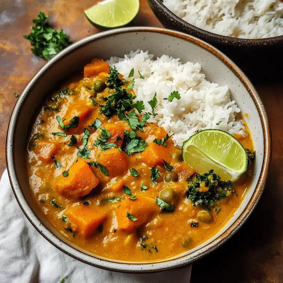 Süßkartoffeln: Gebackene oder gedämpfte Süßkartoffeln fügen eine süße Note hinzu und harmonieren hervorragend mit dem herzhaften Curry.