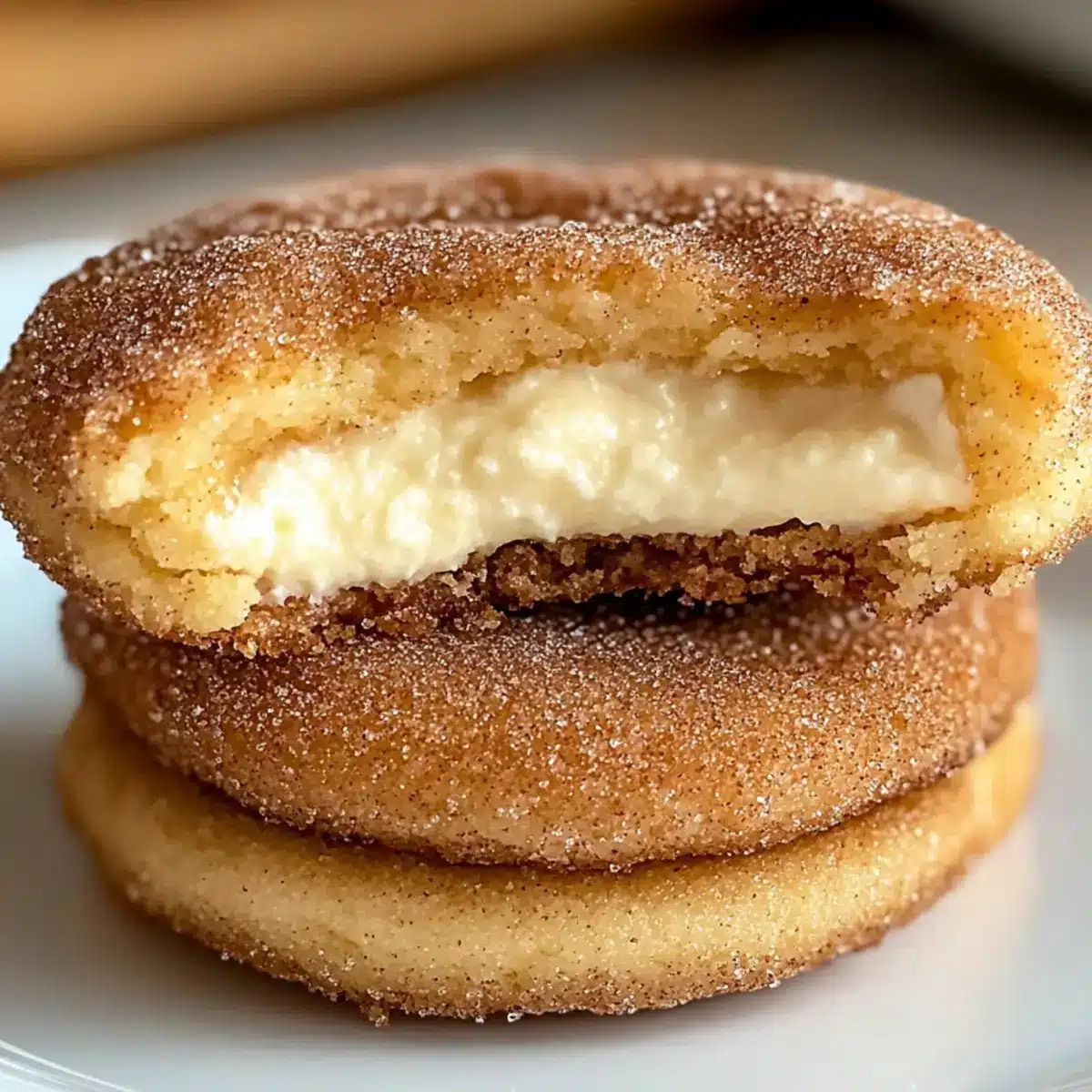 Einfache Zubereitung: Sie benötigen keine komplizierten Techniken, um diese köstlichen Käsekuchen-Kekse zu kreieren. Vielfältige Aromen: Die Kombination aus Zimt und Zucker sowie der cremige Frischkäse verspricht ein Geschmackserlebnis, das begeistert. Perfekte Konsistenz: Der krosse Außenrand und das zarte Innenleben ergeben eine unwiderstehliche Textur. Großer Publikumsliebling: Ob bei Partys oder als Dessert nach dem Abendessen, sie ziehen alle Blicke auf sich. Vorratsfähig: Die Kekse lassen sich wunderbar aufbewahren oder sogar einfrieren, sodass Sie jederzeit einen süßen Snack zur Hand haben!