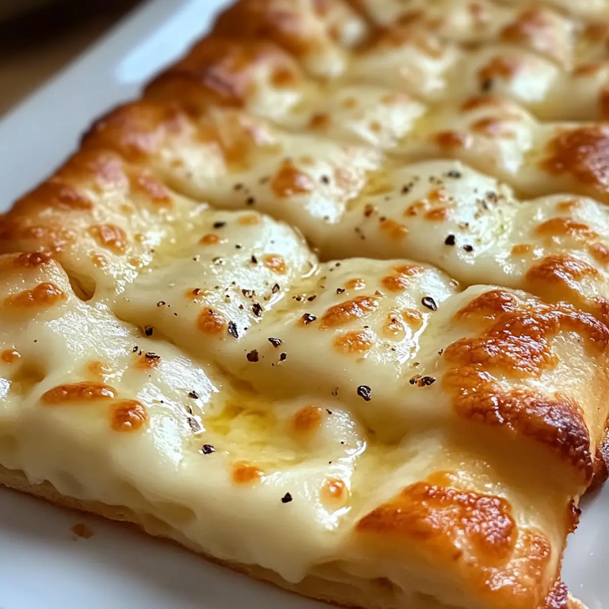 Schmelze die Butter und bestreiche die Oberseite der Teigstreifen großzügig damit. Streue Knoblauchpulver gleichmäßig darüber und verteile dann den geriebenen Mozzarella über die Streifen. Dies wird den Käsebrotsticks ihren köstlichen, käsigen Geschmack verleihen.