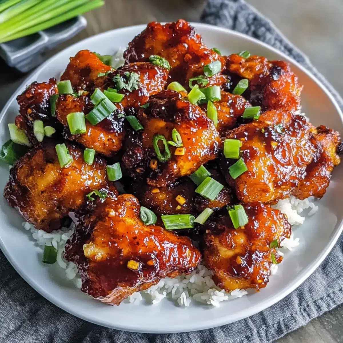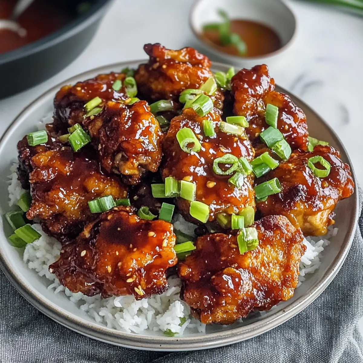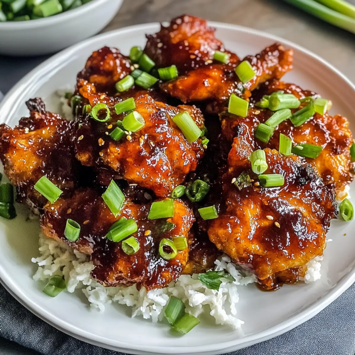 - Garnieren Sie das Knallerküken mit geschnittenen Frühlingszwiebeln und servieren Sie es über gekochtem Reis.