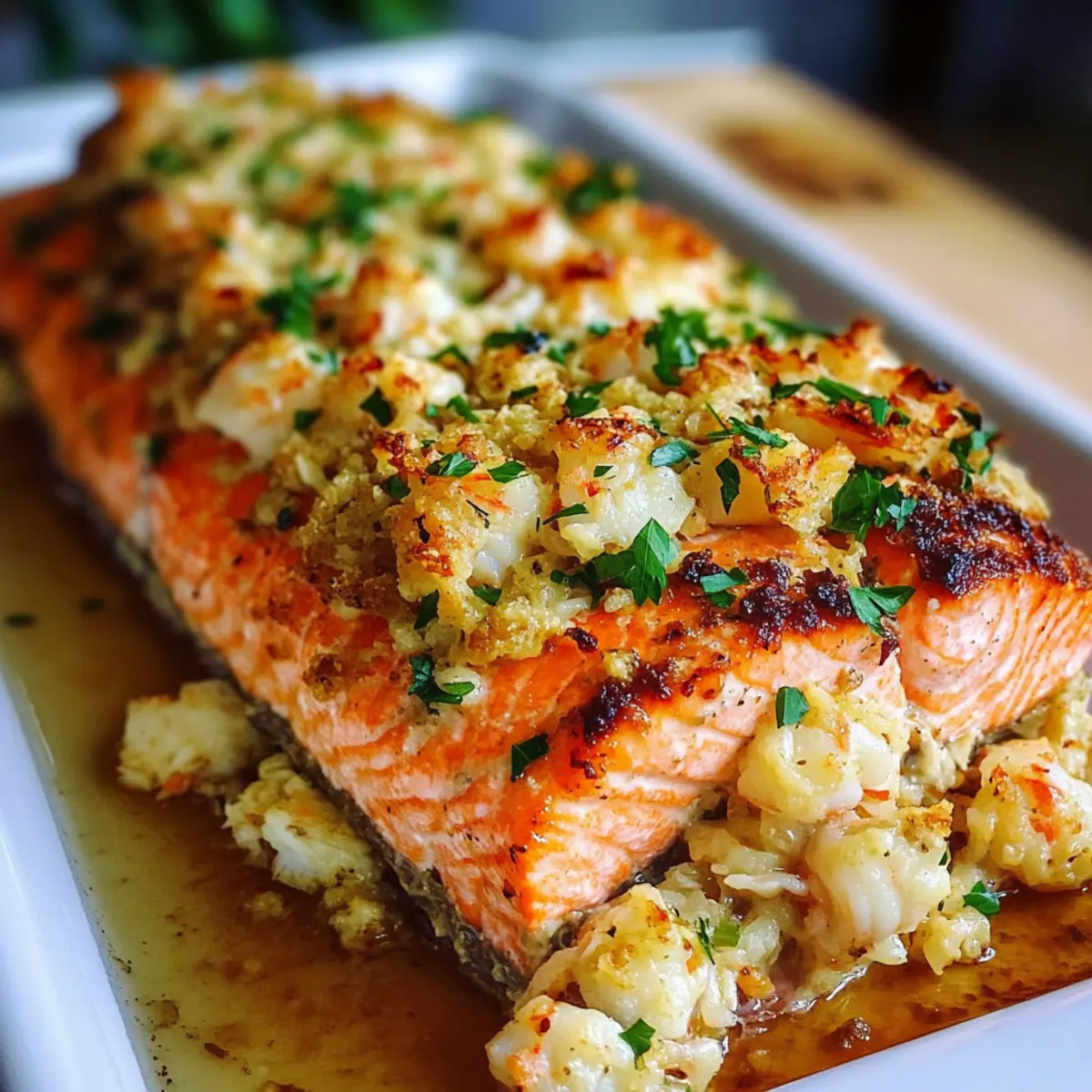 Wiedererwärmen: Reheize den Lachs sanft im Ofen bei 175 °C (350 °F), um ihn gleichmäßig zu erwärmen, ohne dass die Füllung austrocknet.