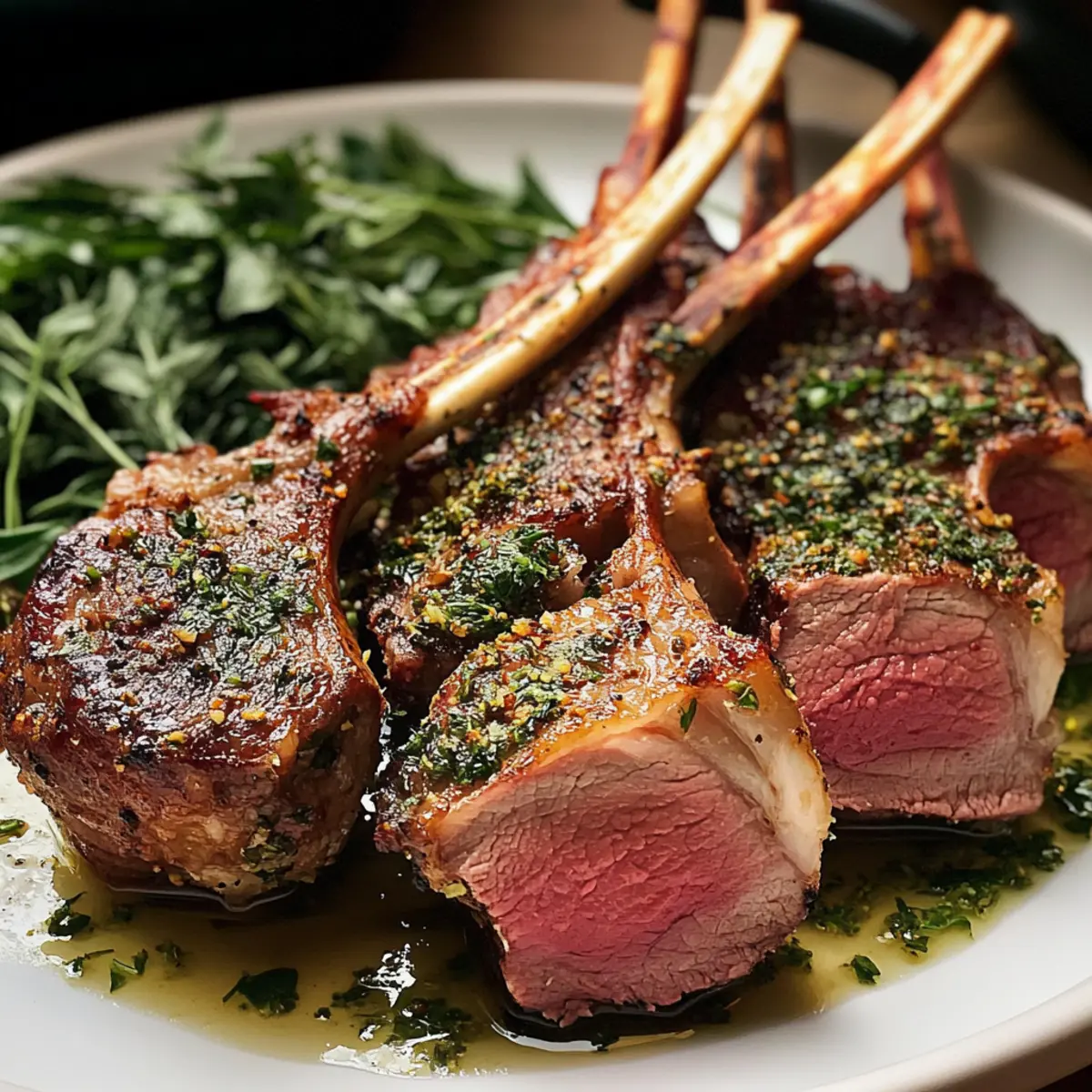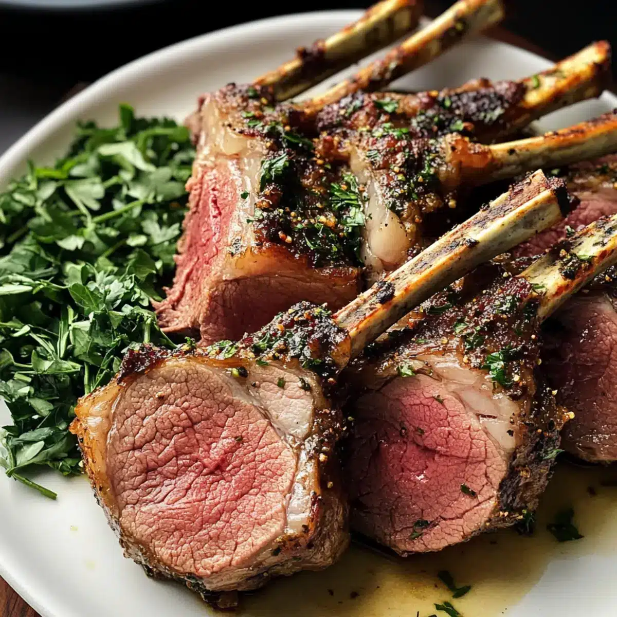 Zart gebratener Lammrücken mit Knoblauchkruste