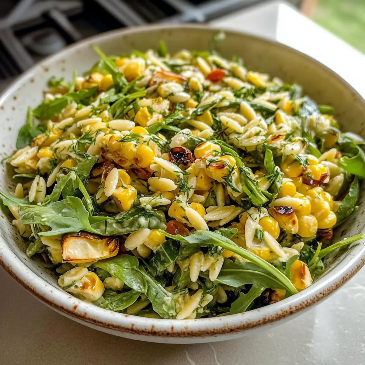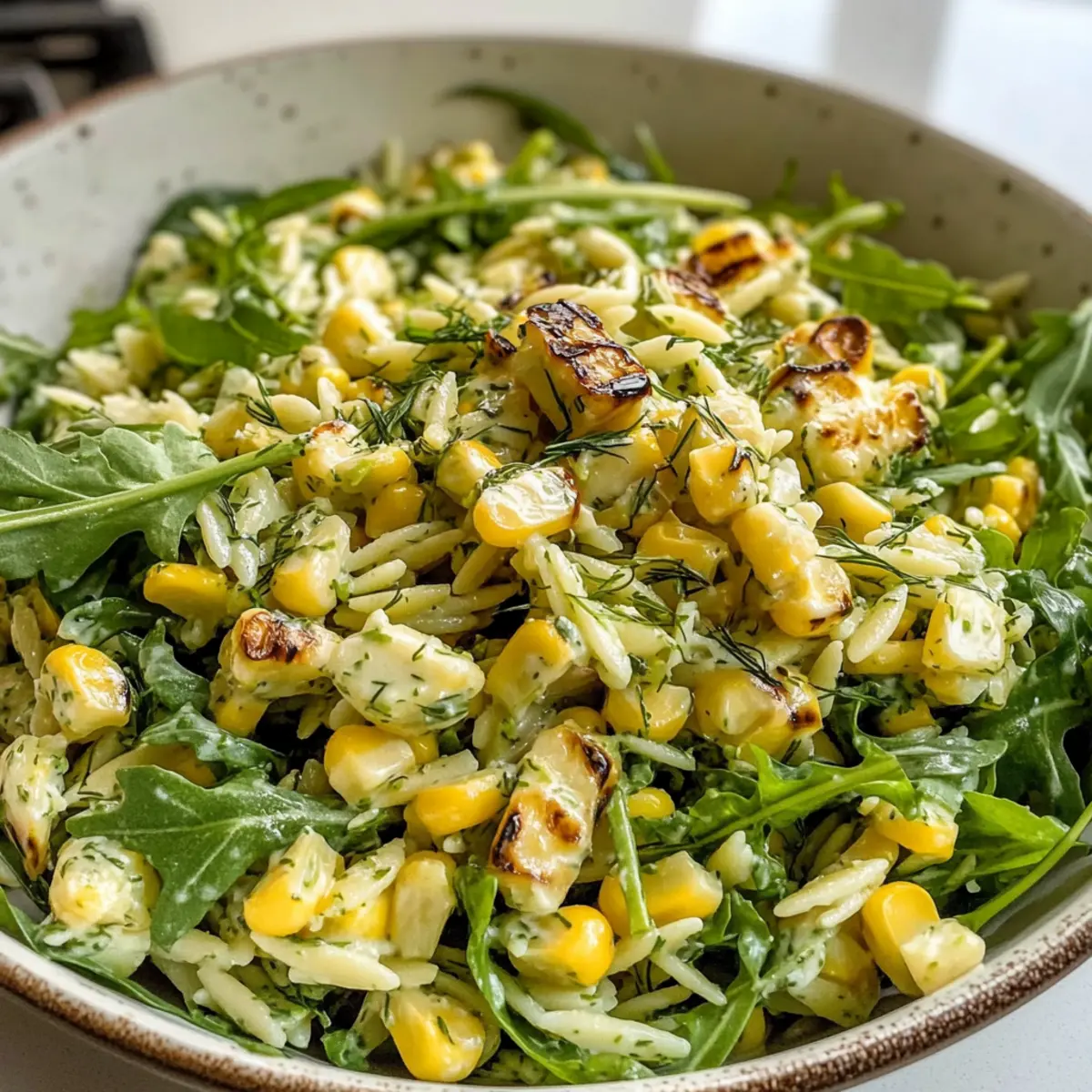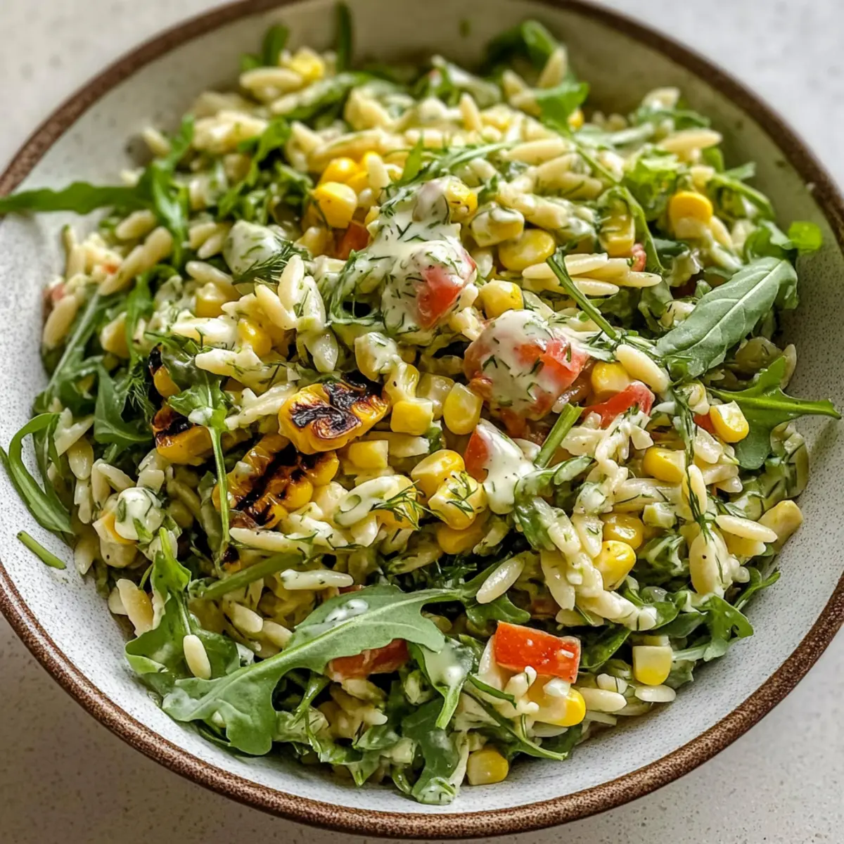 Vibranter Mais-Orzo-Salat mit cremigem Dressing