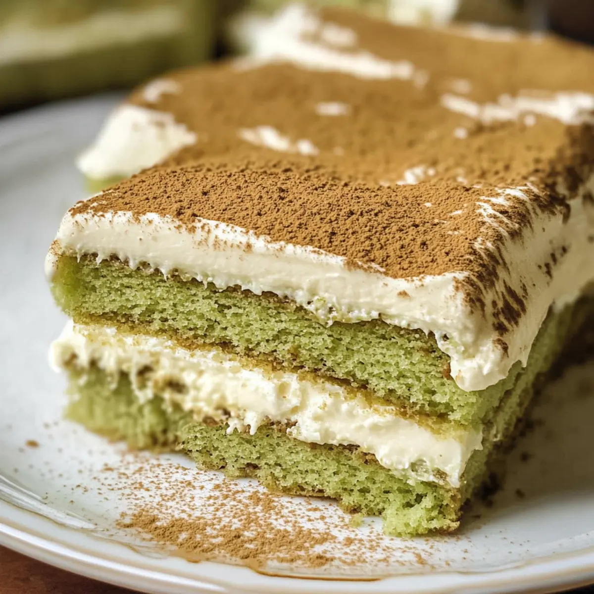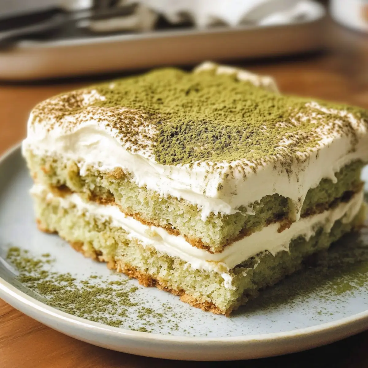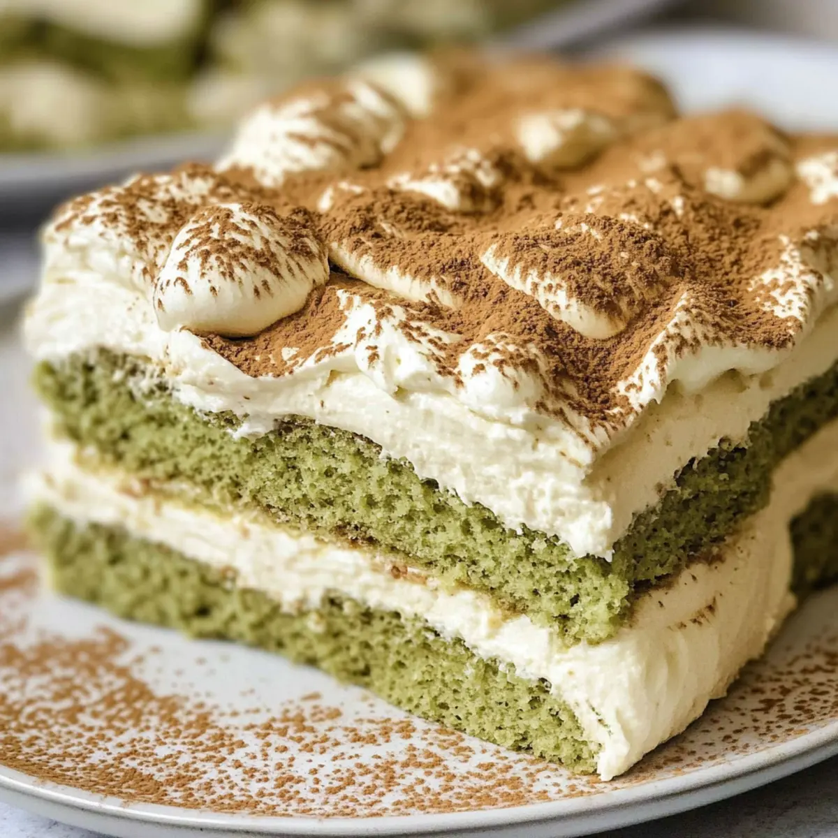 Einzigartiger Genuss: Dieses Matcha Tiramisu kombiniert die traditionellen Aromen eines italienischen Klassikers mit dem zarten Geschmack von grünem Tee, was ein unvergleichliches Geschmackserlebnis bietet.