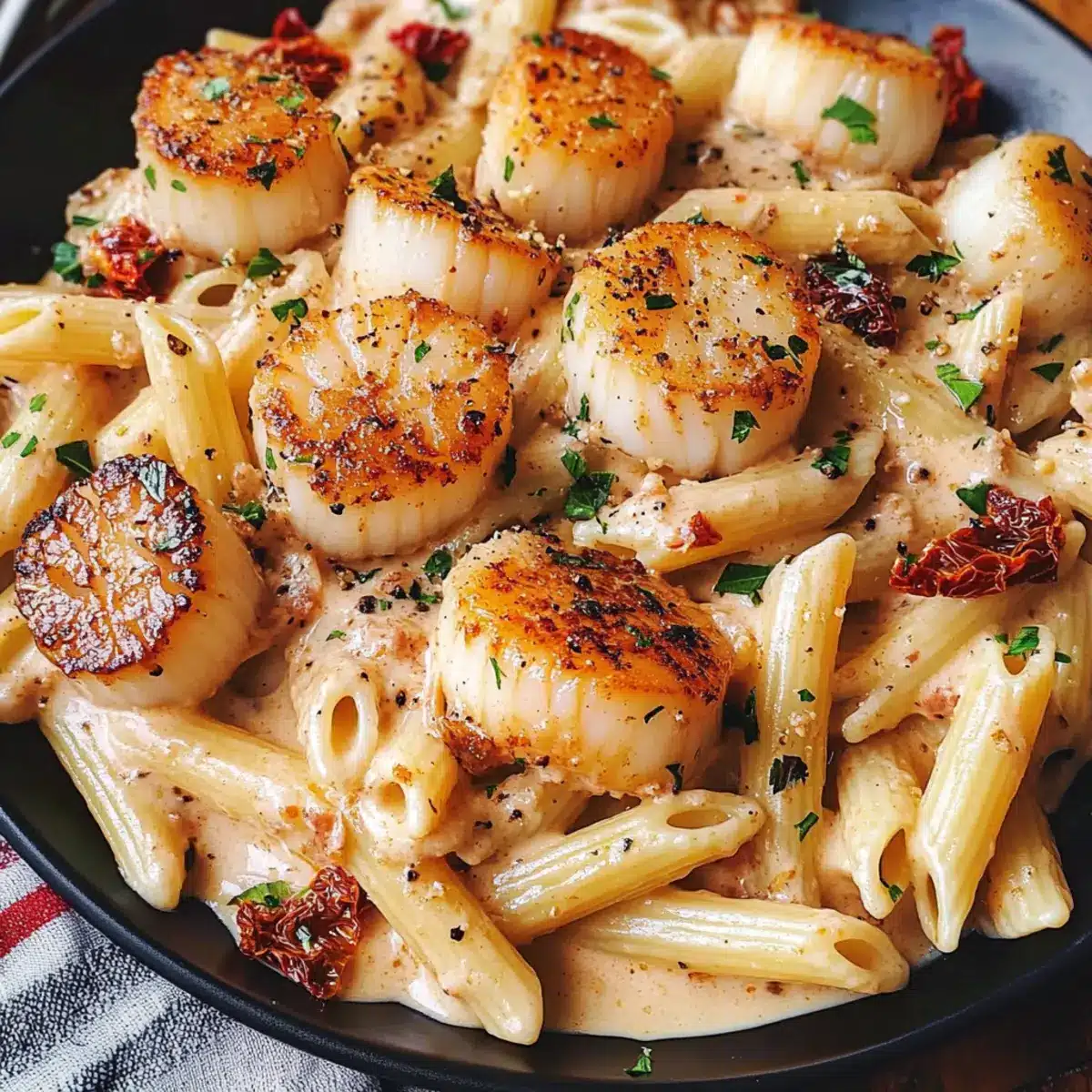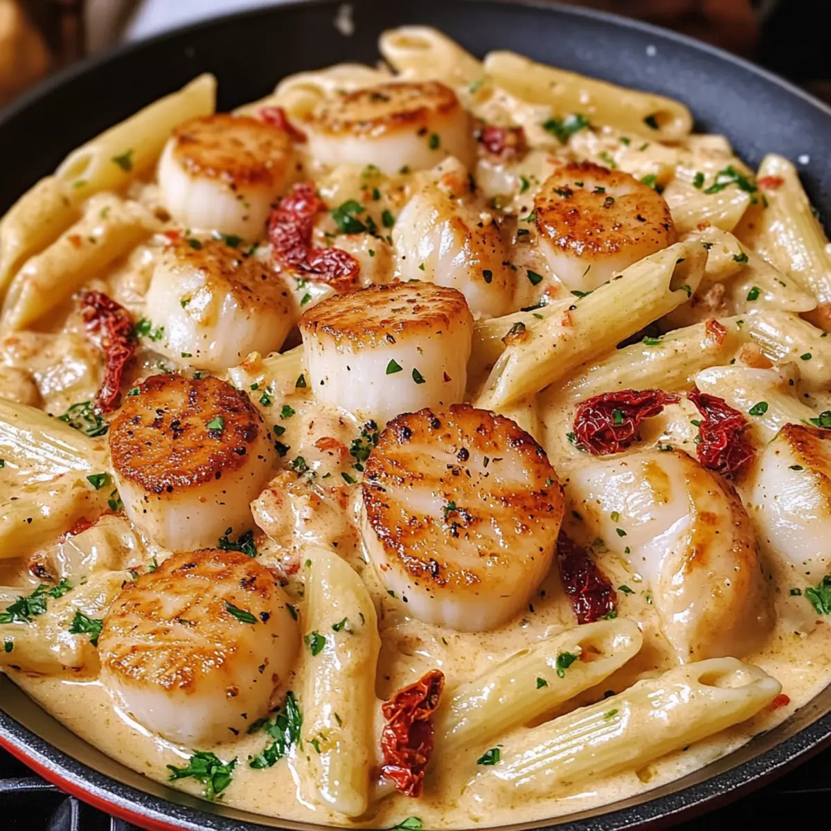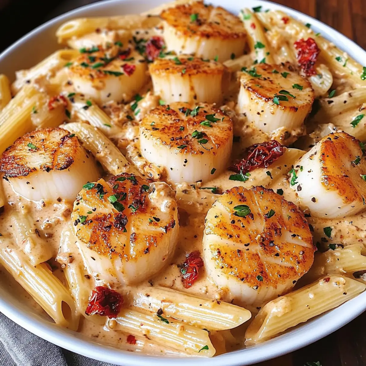 - Servieren: Legen Sie die Jakobsmuscheln über die Pasta und garnieren Sie nach Wunsch. Servieren Sie heiß.