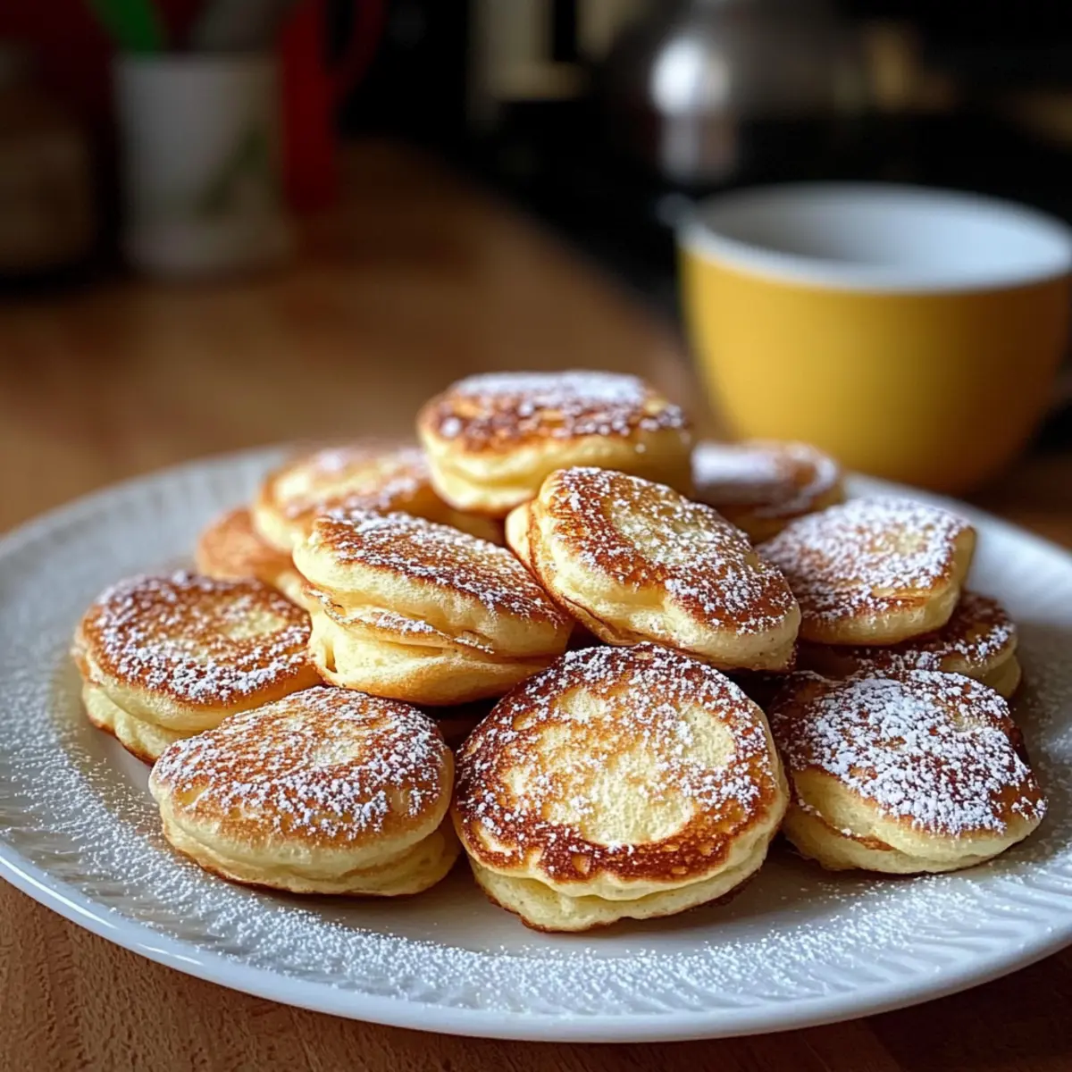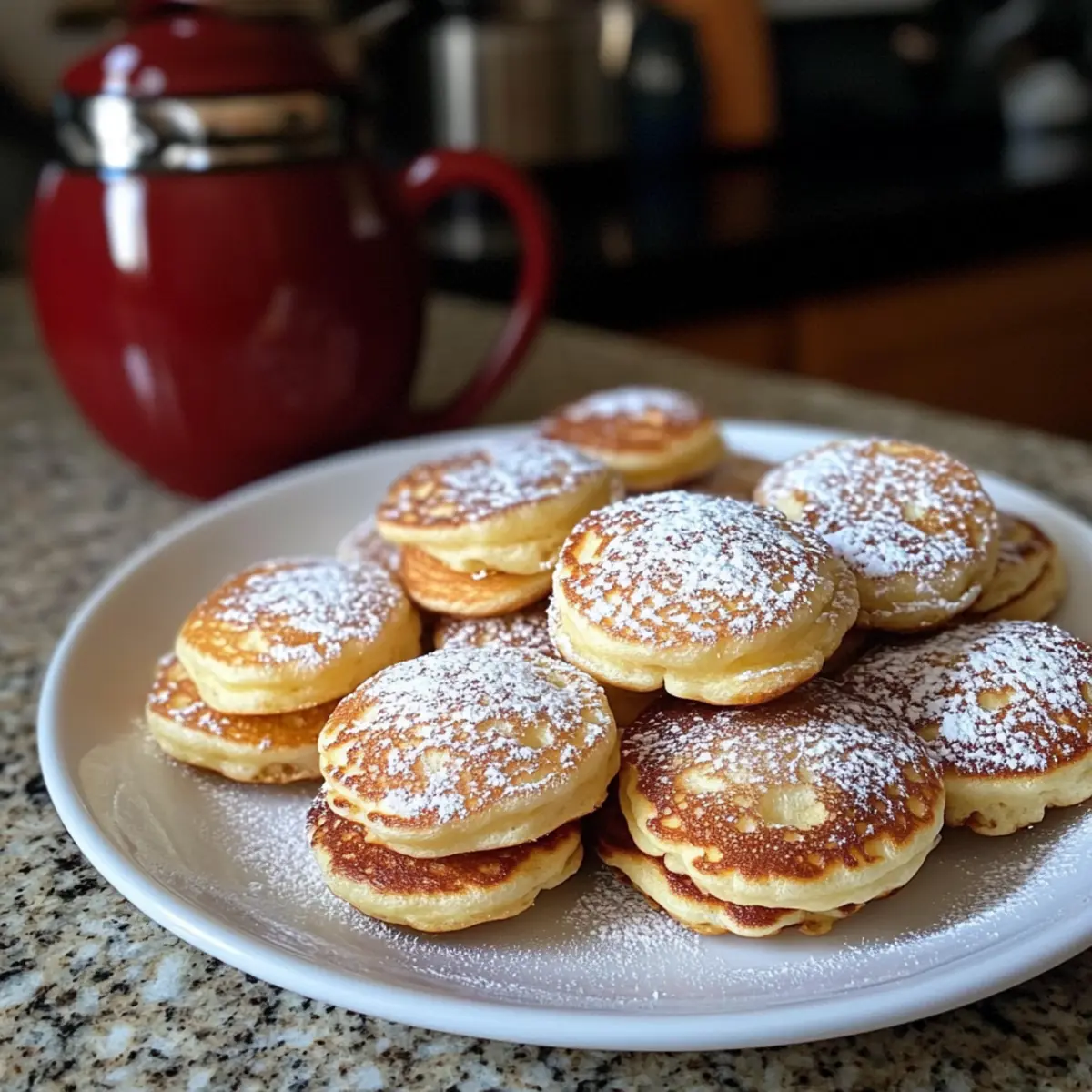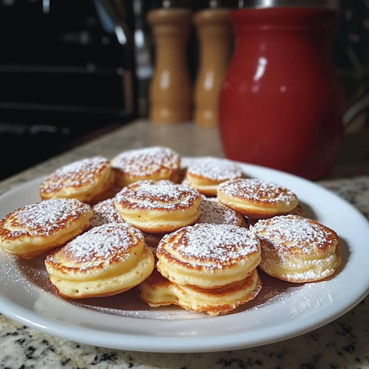 - Serviere die Poffertjes warm, bestäubt mit Puderzucker oder garniert mit Butter und Sirup.