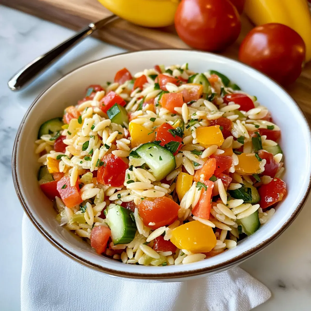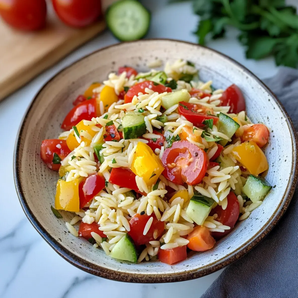 Es ist ein warmer Sommerabend, und während die Sonne am Horizont untergeht, weht ein leichter, frischer Wind durch den Garten. Ich erinnere mich, wie meine Freunde sich um den Tisch versammeln und an den bunten Schalen mit Essen naschen. Ein Highlight meines letzten Grillfests war mein farbenfroher Orzo-Salat – eine köstliche Mischung aus knackigem Gemüse, die sowohl das Auge als auch den Gaumen erfreut. Diese blitzschnell zubereitete Delikatesse ist nicht nur ideal für einen geselligen Abend, sondern auch perfekt für die schnelle Mittagspause. Ihr seid auf der Suche nach einem gesunden, bunten Gericht, das in nur 30 Minuten fertig ist? Dann ist dieser Orzo-Salat genau das Richtige für euch! Welche köstlichen Variationen würdet ihr hinzufügen?