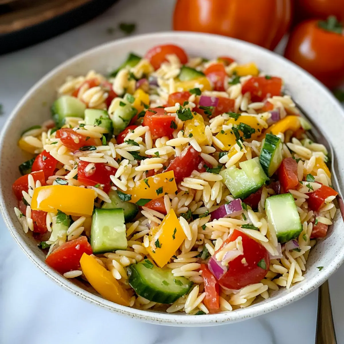• Frische Zutaten: Achte darauf, nur frisches Gemüse zu verwenden, da dies entscheidend für den Geschmack deines Orzo-Salats ist. Vermeide schlaffe oder beschädigte Zutaten.