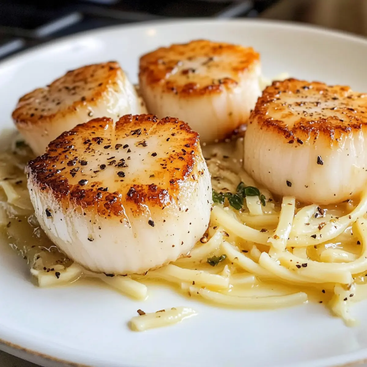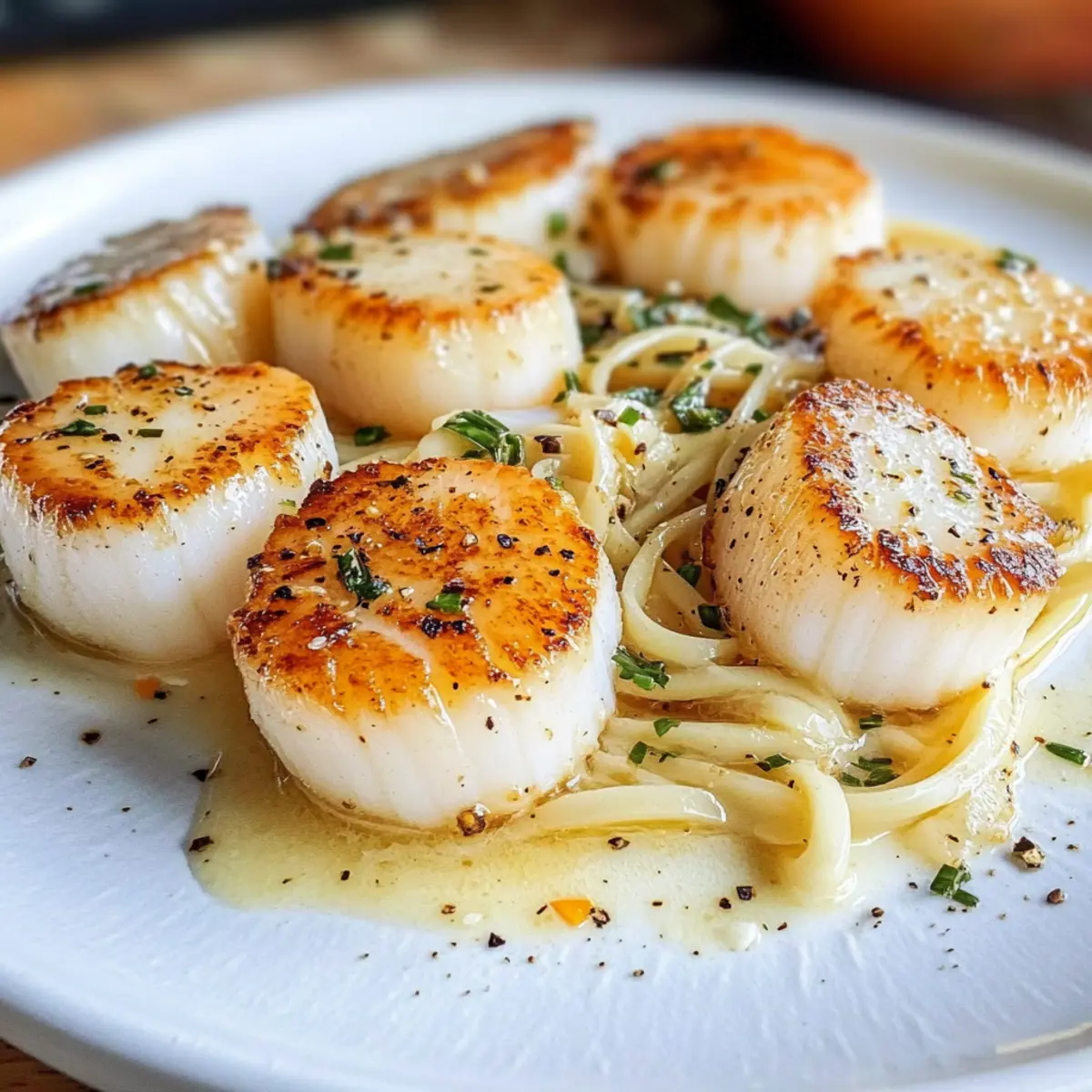 Zitronenbutter-Pasta: Diese cremige Pasta mit einem Spritzer Zitrone ergänzt die Jakobsmuscheln ideal und harmoniert perfekt mit dem reichhaltigen Geschmack der Butter. Ein Genuss für alle Sinne!