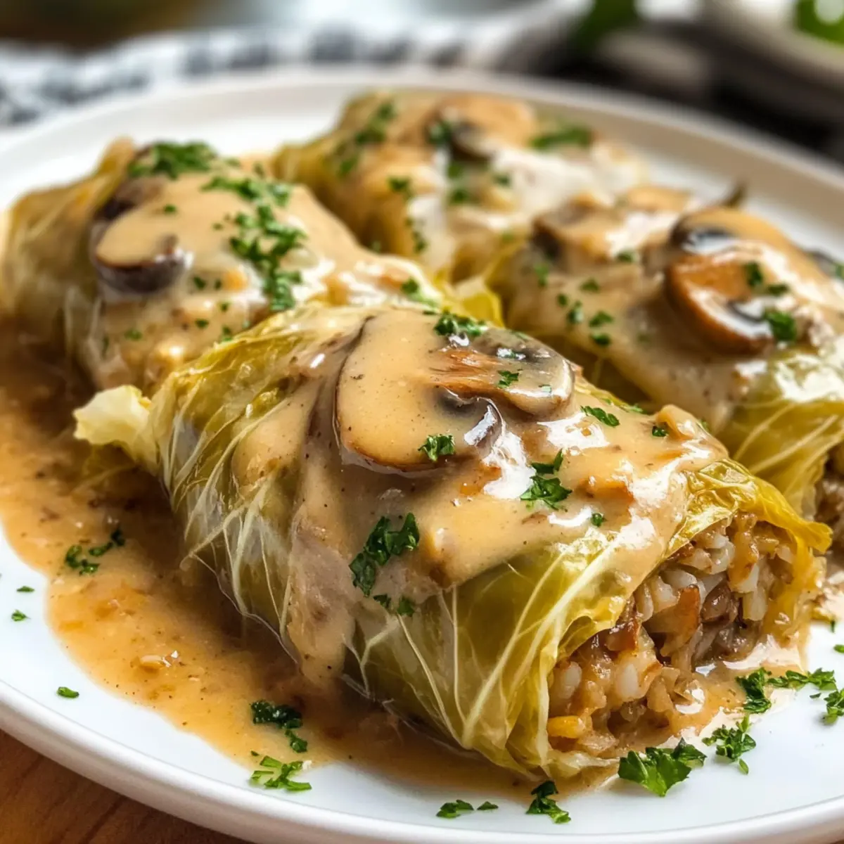 Polnische Kohlrouladen mit cremiger Pilzsauce