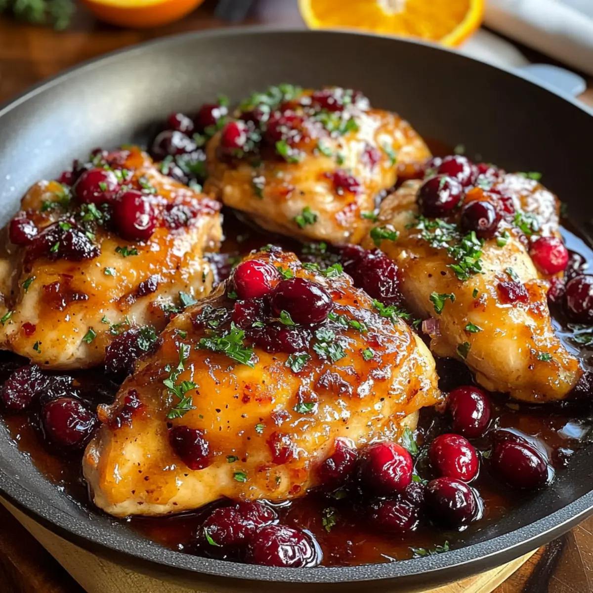 Variationen des Preiselbeer-Orange-Hühnchens