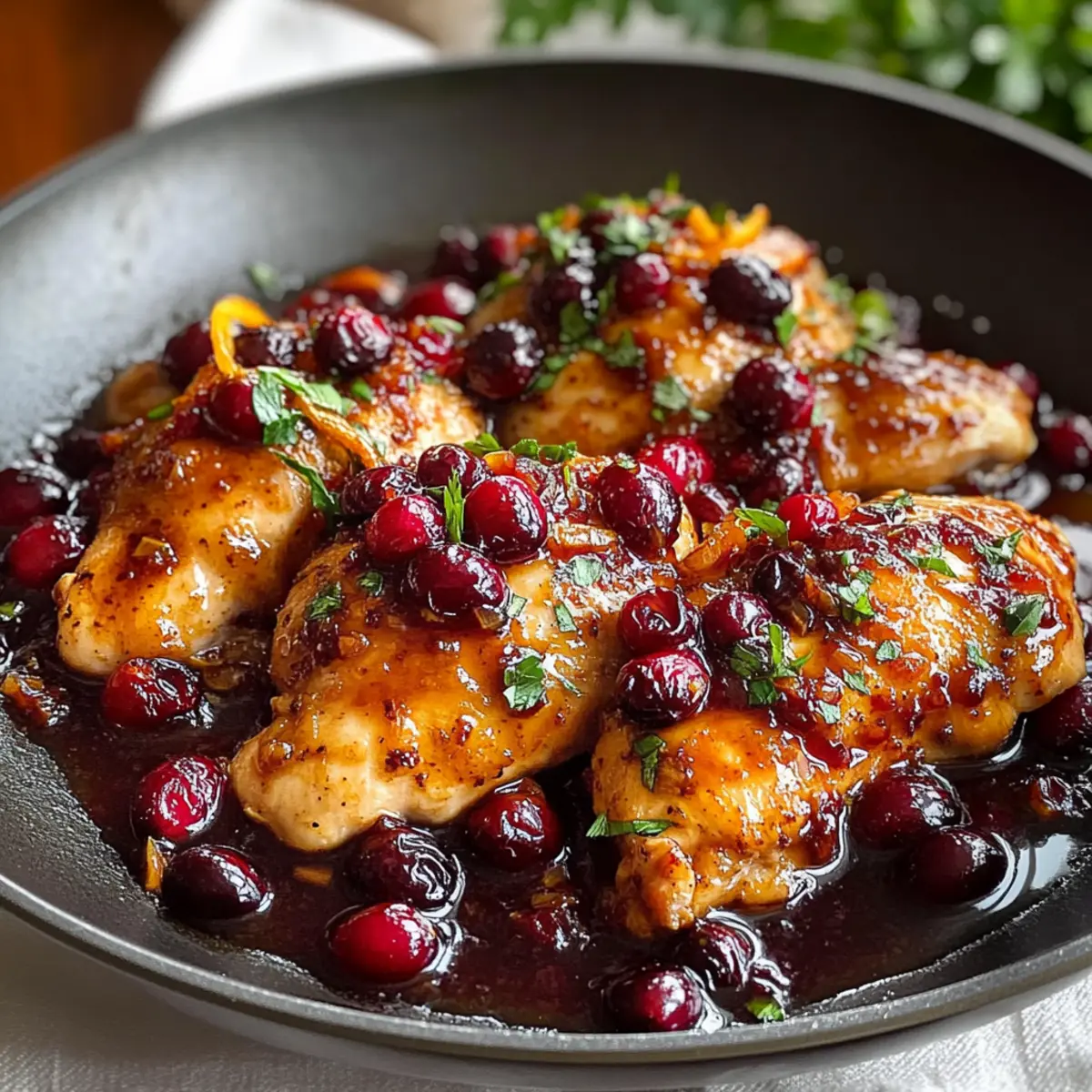 Festlicher Genuss: Die Kombination aus frischen Preiselbeeren und zartem Hühnerfleisch schafft eine einmalige Geschmacksexplosion, die auch Ihre Gäste beeindrucken wird.