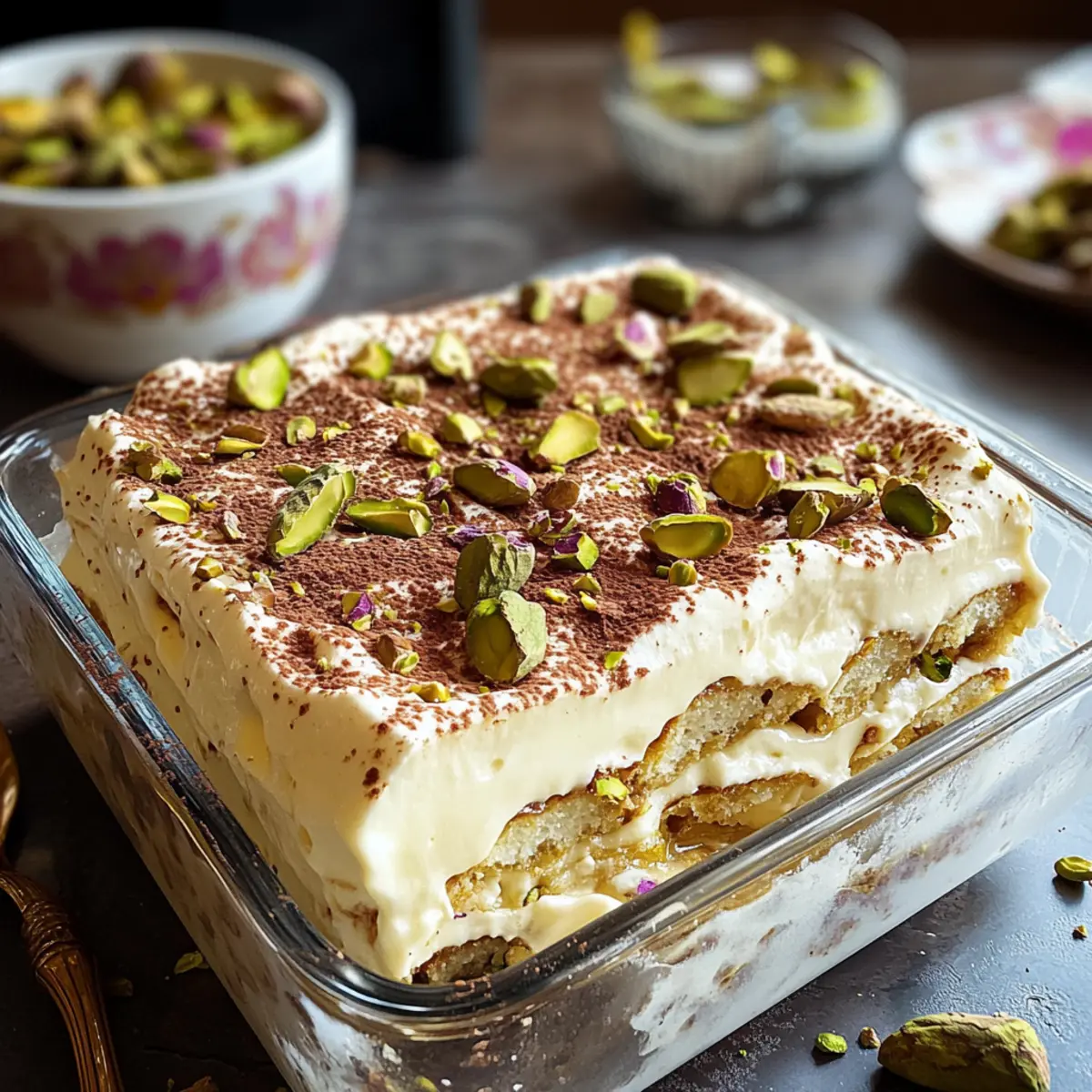 - Eiscreme mit Pistazien: Eine zart-cremige Pistazieneiscreme ergänzt die nussigen Elemente im Tiramisu und sorgt für ein harmonisches Geschmackserlebnis.