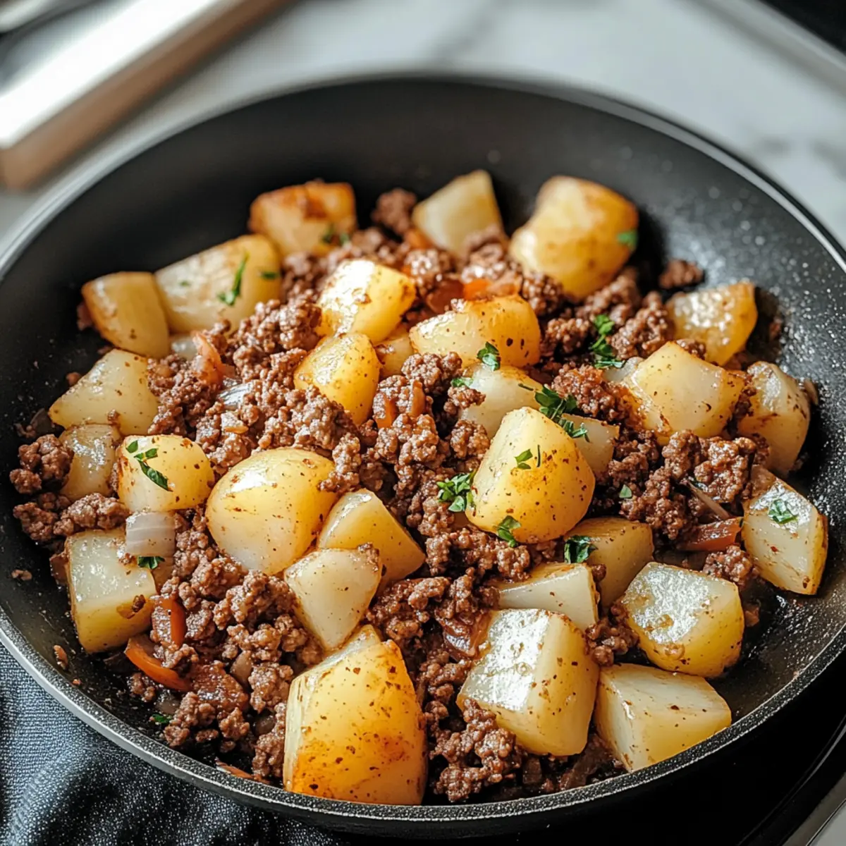 Köstliche Aromen: Der unverwechselbare Geschmack von gewürztem Rindfleisch und zarten Kartoffeln macht jedes Bissen zu einem Fest für die Sinne.